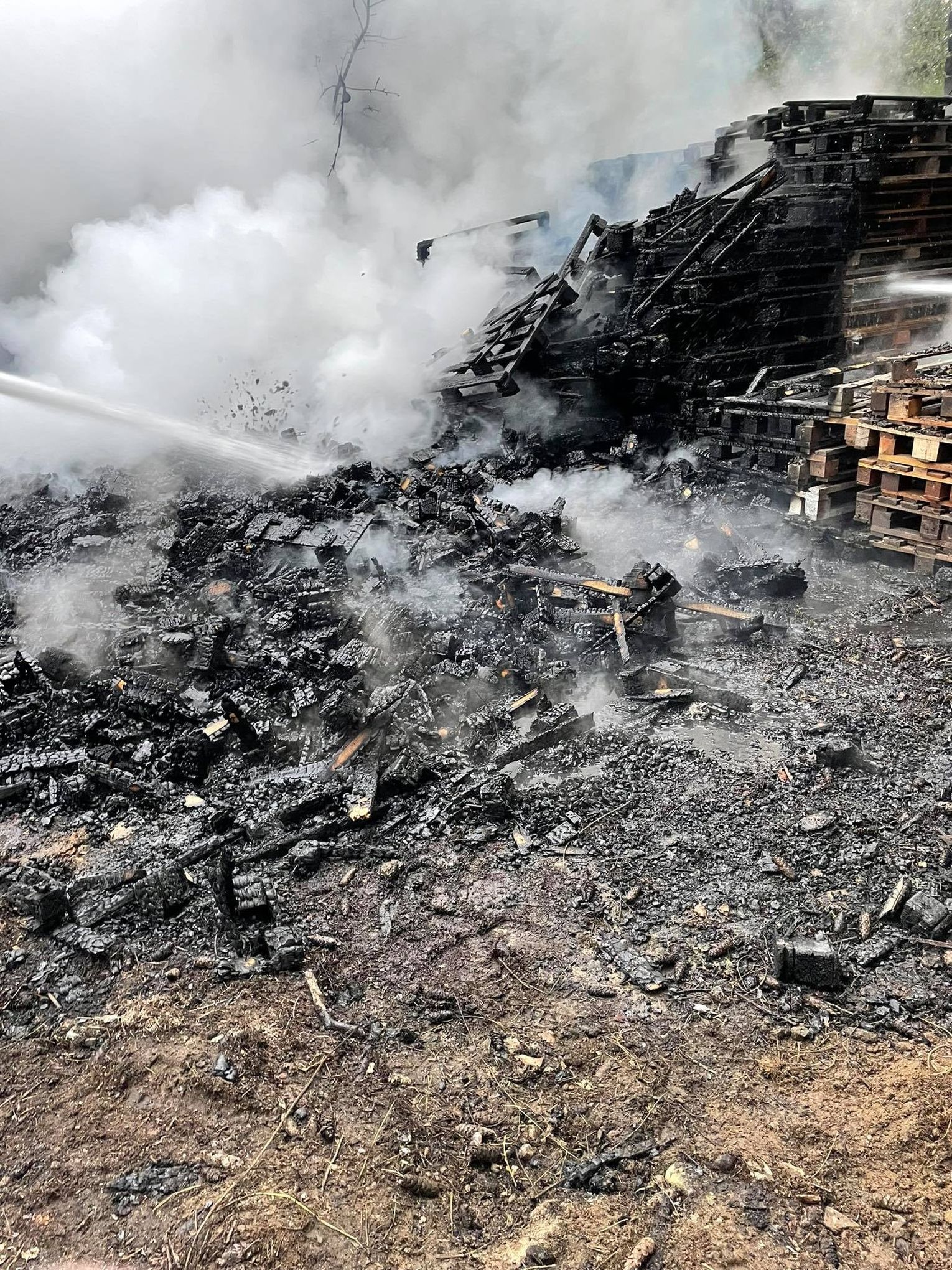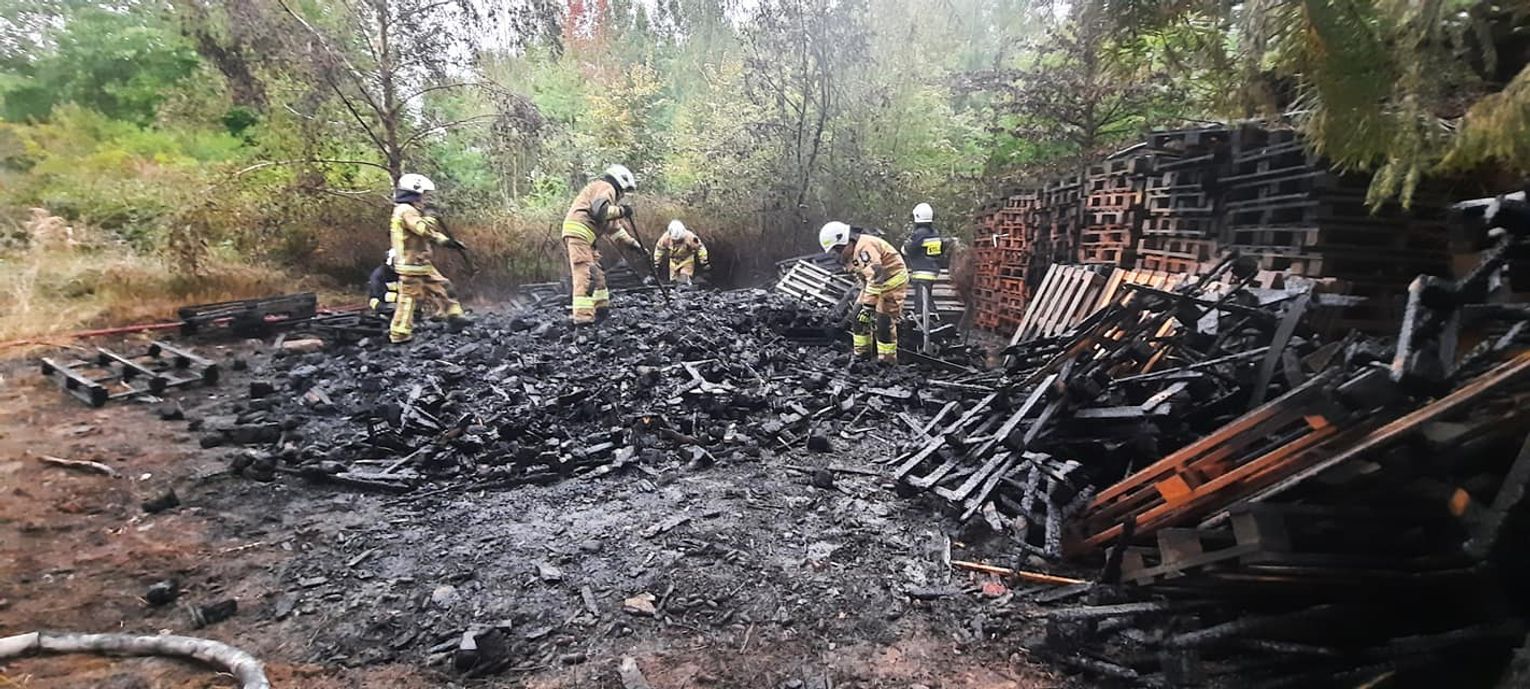 Pożar wybuchł w środę 22 września 2021 r. przed godz. 18 przy ulicy Dojazdowej w Chojnie. Paliło się składowisko palet. Ogień gasiło pięć zastępów straży pożarnej.