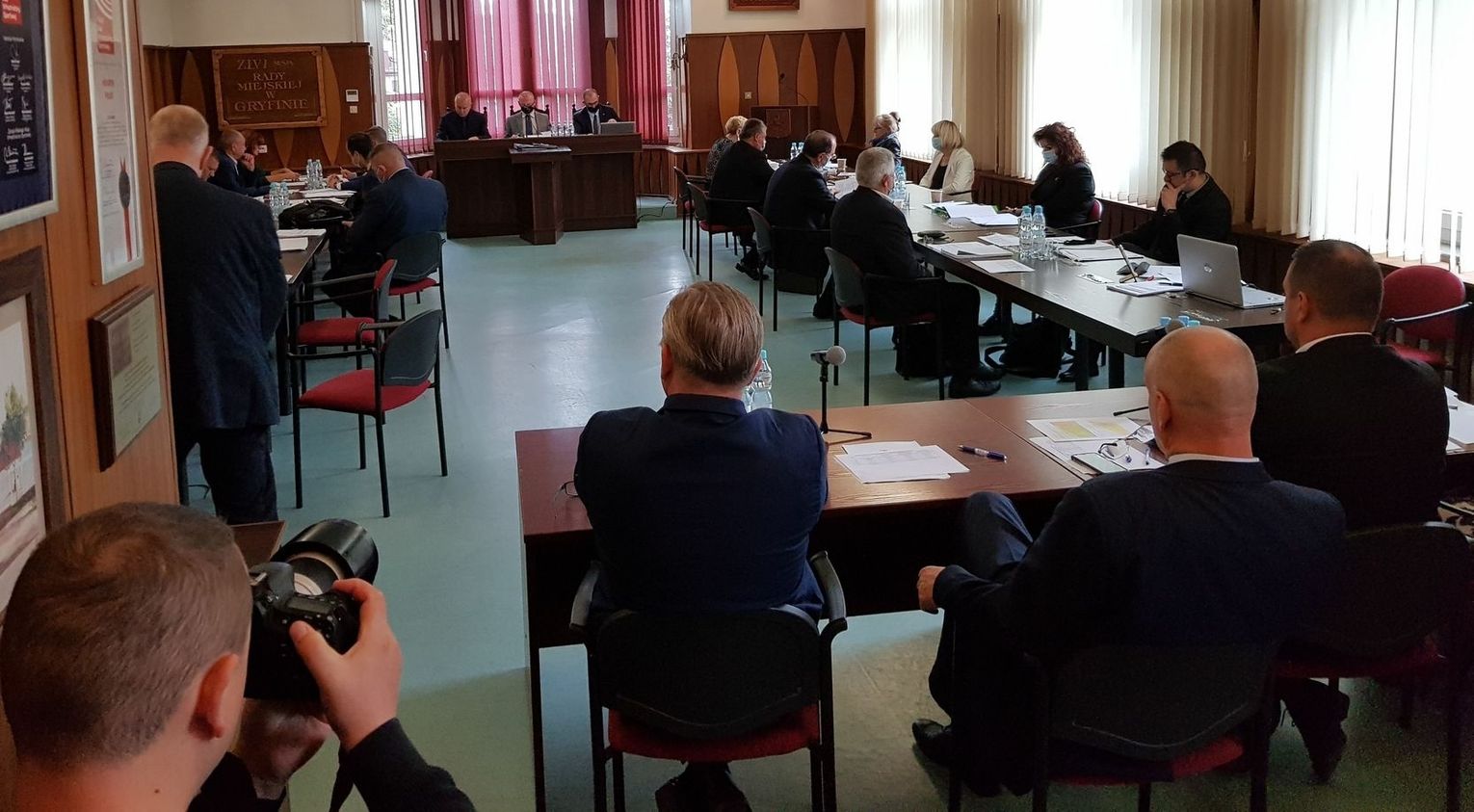 Po apelu przewodniczącego Rafała Gugi maseczki założyło tylko kilku radnych. Nikt jednak z pracujących w Urzędzie Miejskim w Gryfinie, których zwierzchnikiem jest Mieczysław Sawaryn nie zakrył ust i nosa i nie uszanował sytuacji osoby chorej oraz przepisów.