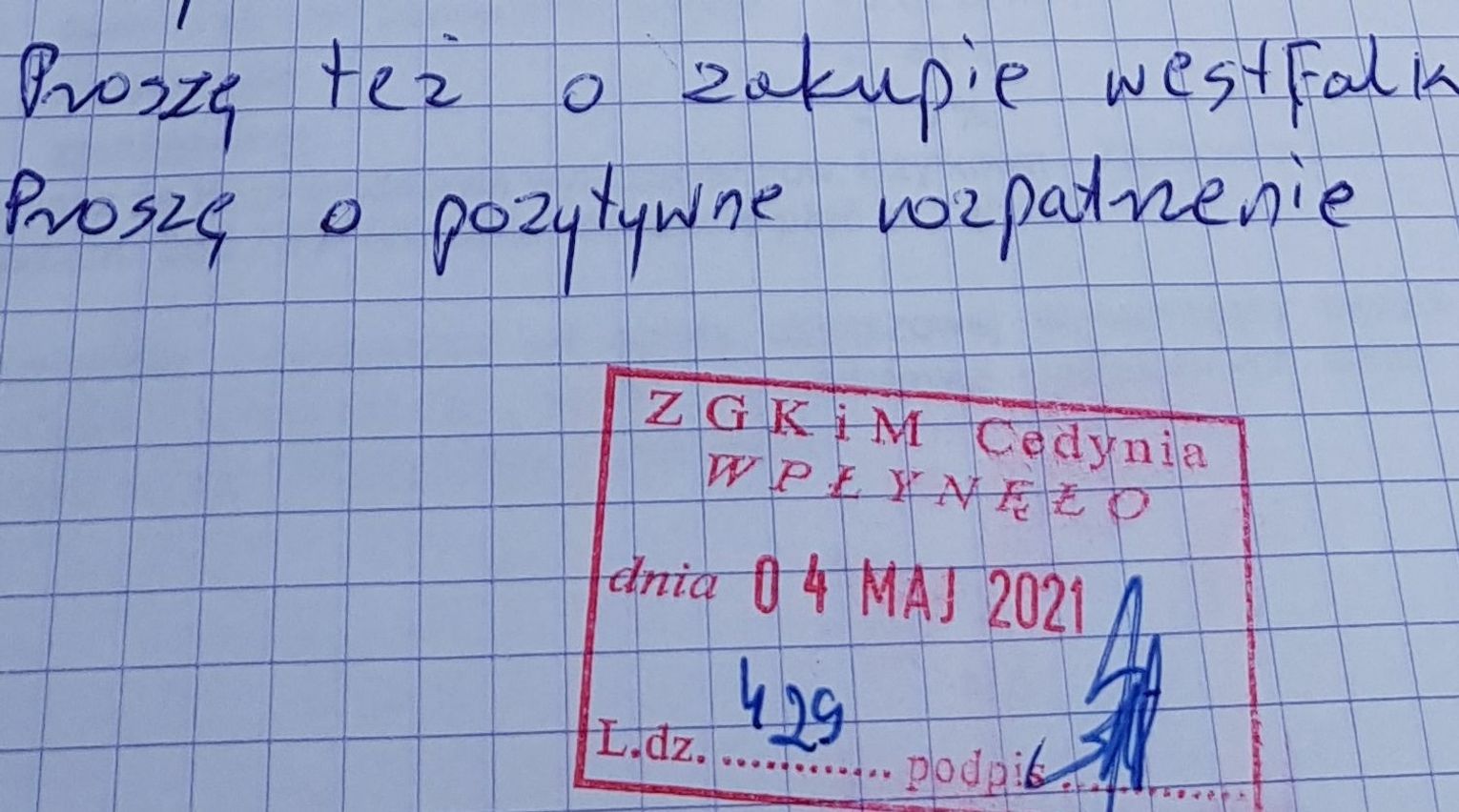 Pan Ireneusz pokazuje nam pismo, które wpłynęło 4 maja 2021 r. do ZGKiM (dowód - fragment w fotogalerii). Podobno do dziś nie dostał odpowiedzi. I nie ma też systemowego ogrzewania.