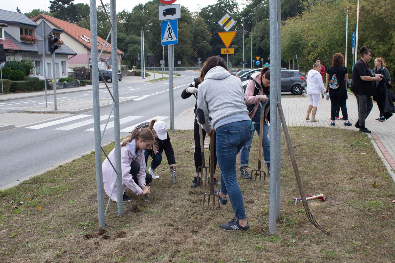 W międzyczasie druga część naszej drużyny rozpoczęła przygotowania podłoża do nasadzeń. W ruch poszły szpadle, widły, wszelki sadzarki i automaty do plantowania.
