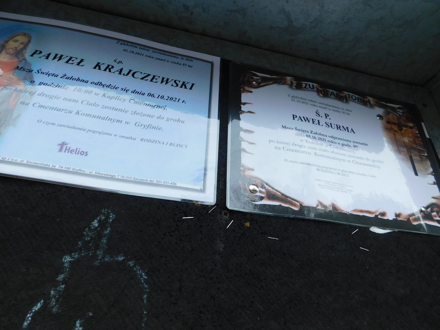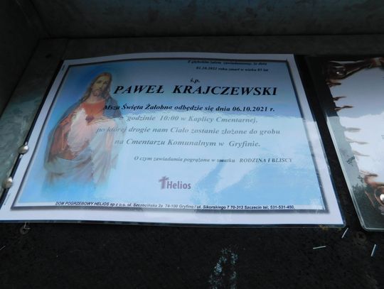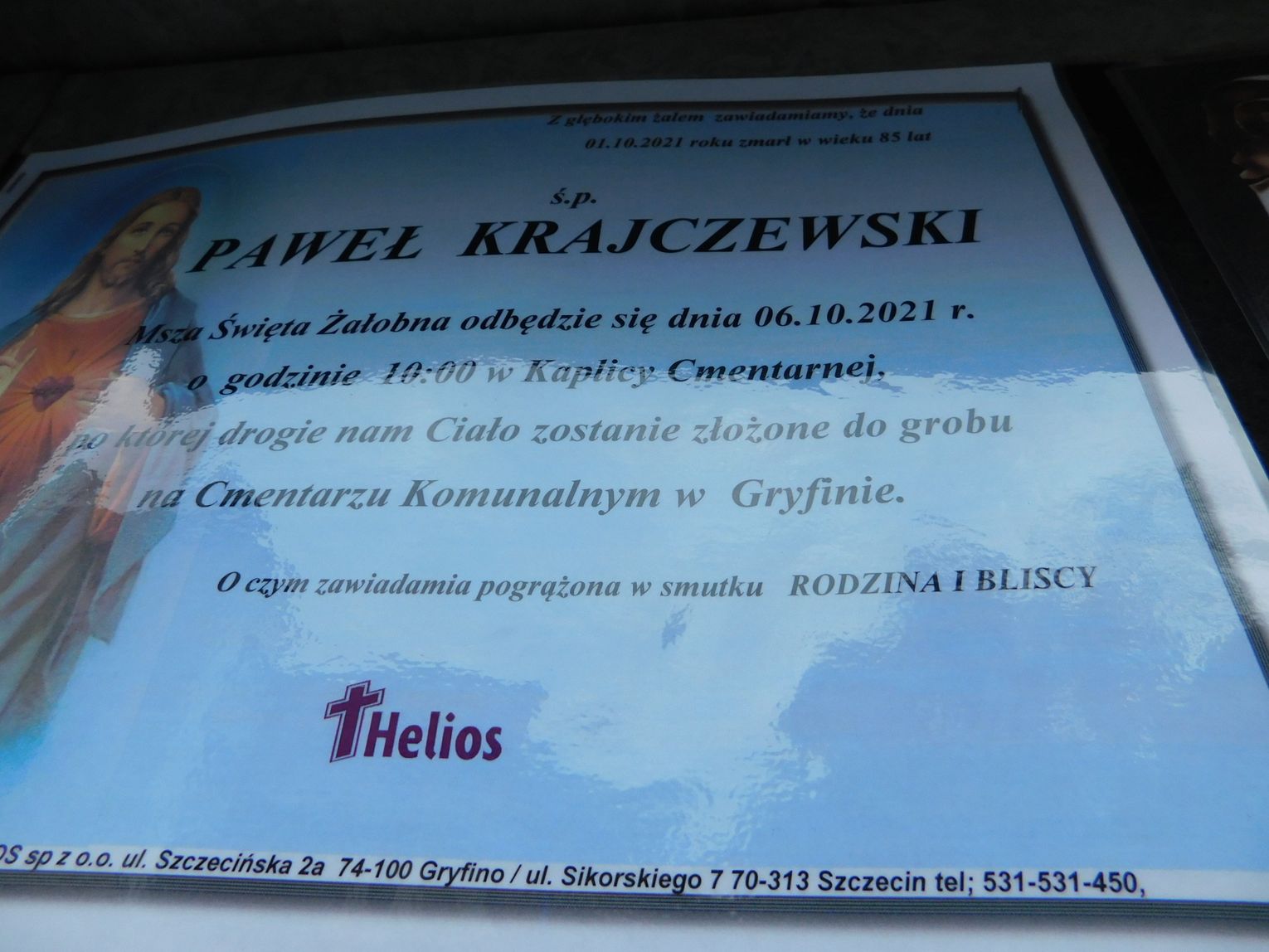 Paweł Krajczewski - lat 85 (pogrzeb 6 października w Gryfinie, msza o godz. 10 w kaplicy)