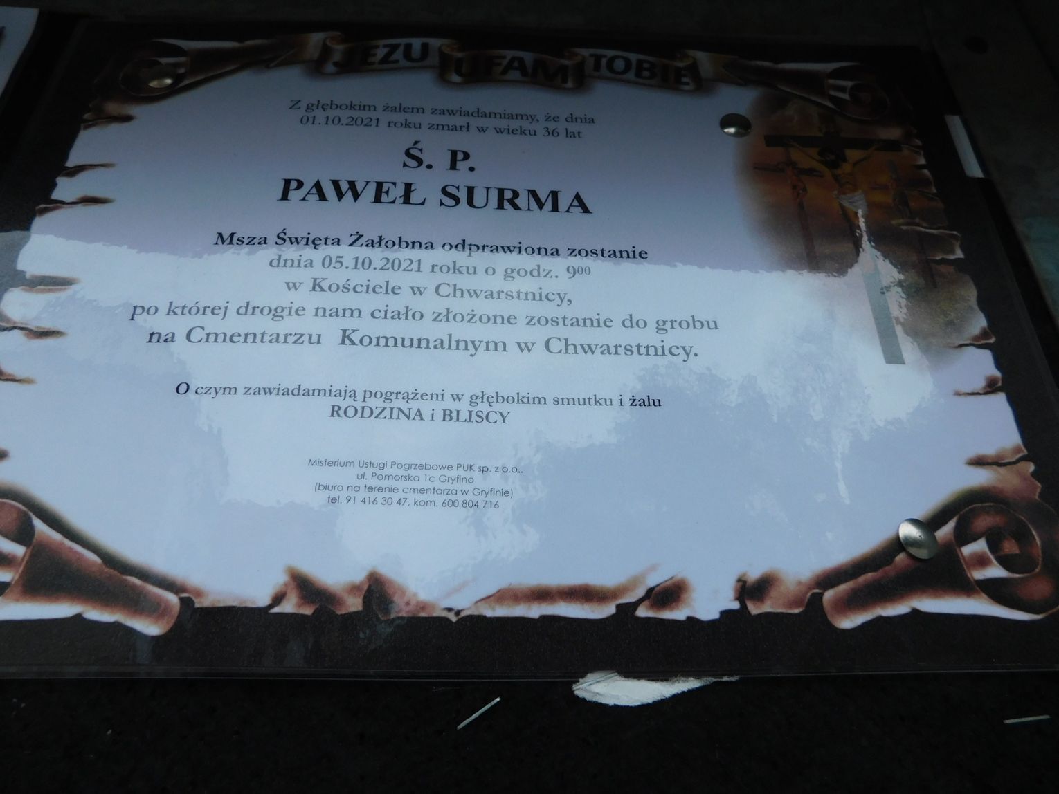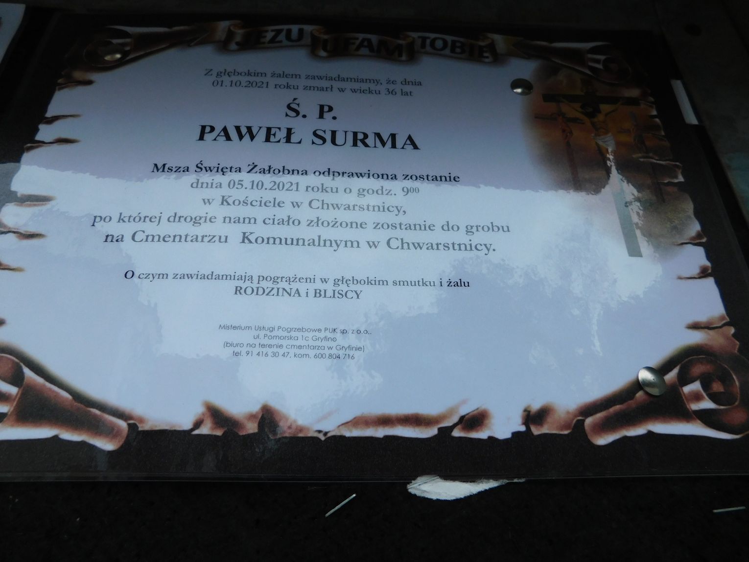 Paweł Surma - lat 36 (pogrzeb 5 października w Chwarstnicy, msza w tamtejszym kościele o godz. 9)