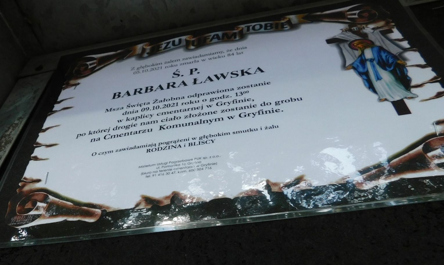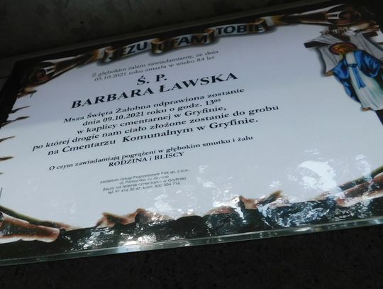 Barbara Ławska - lat 84 (pogrzeb 9 października, msza w kaplicy o godz.13)