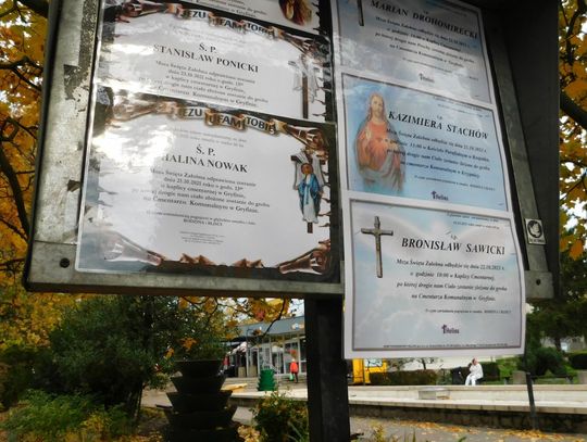Na tablicach informacyjnych wiszą dziś (20 października 2021 r.) klepsydry z następującymi nazwiskami:
