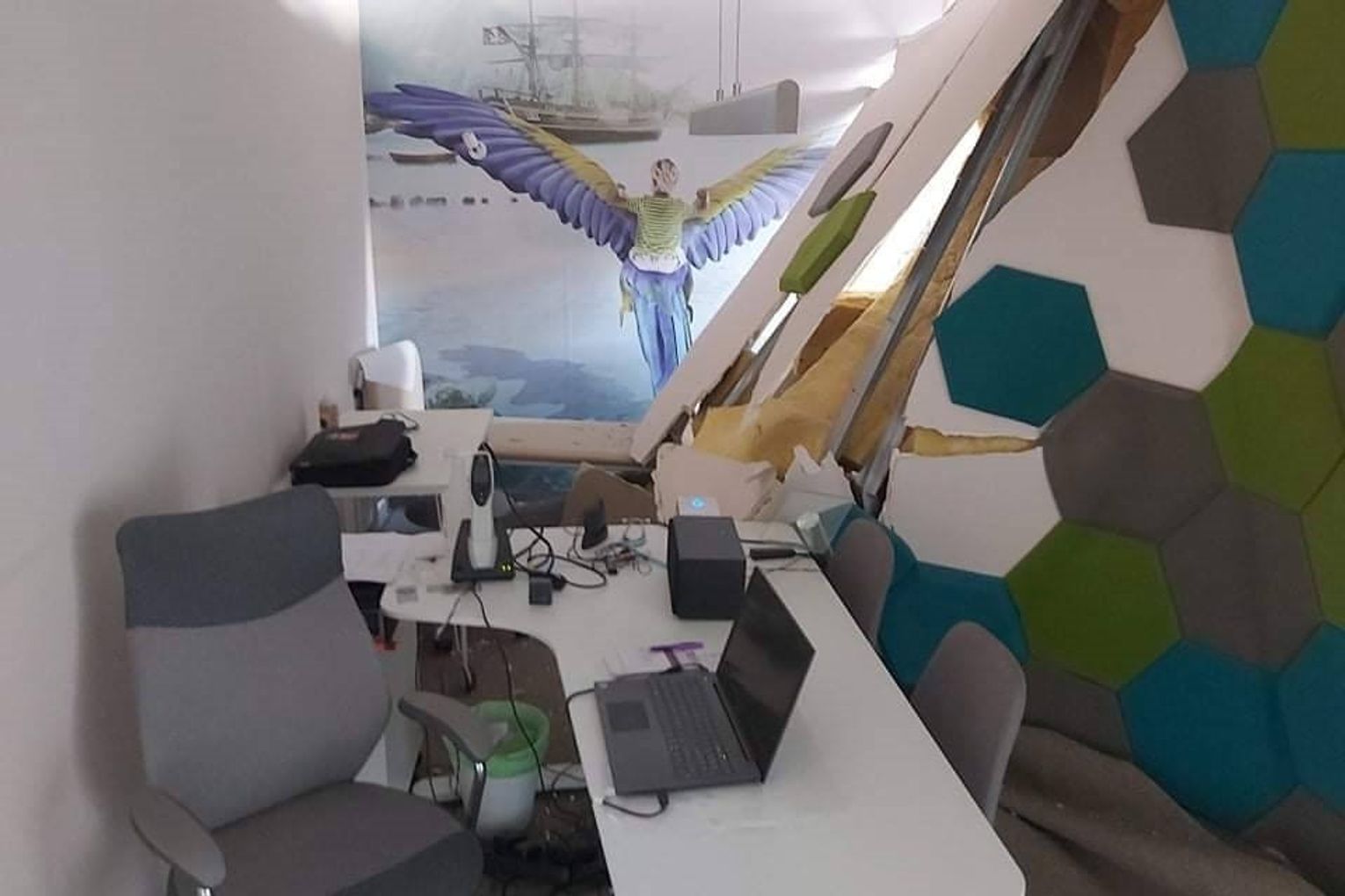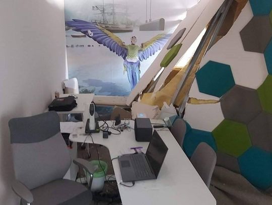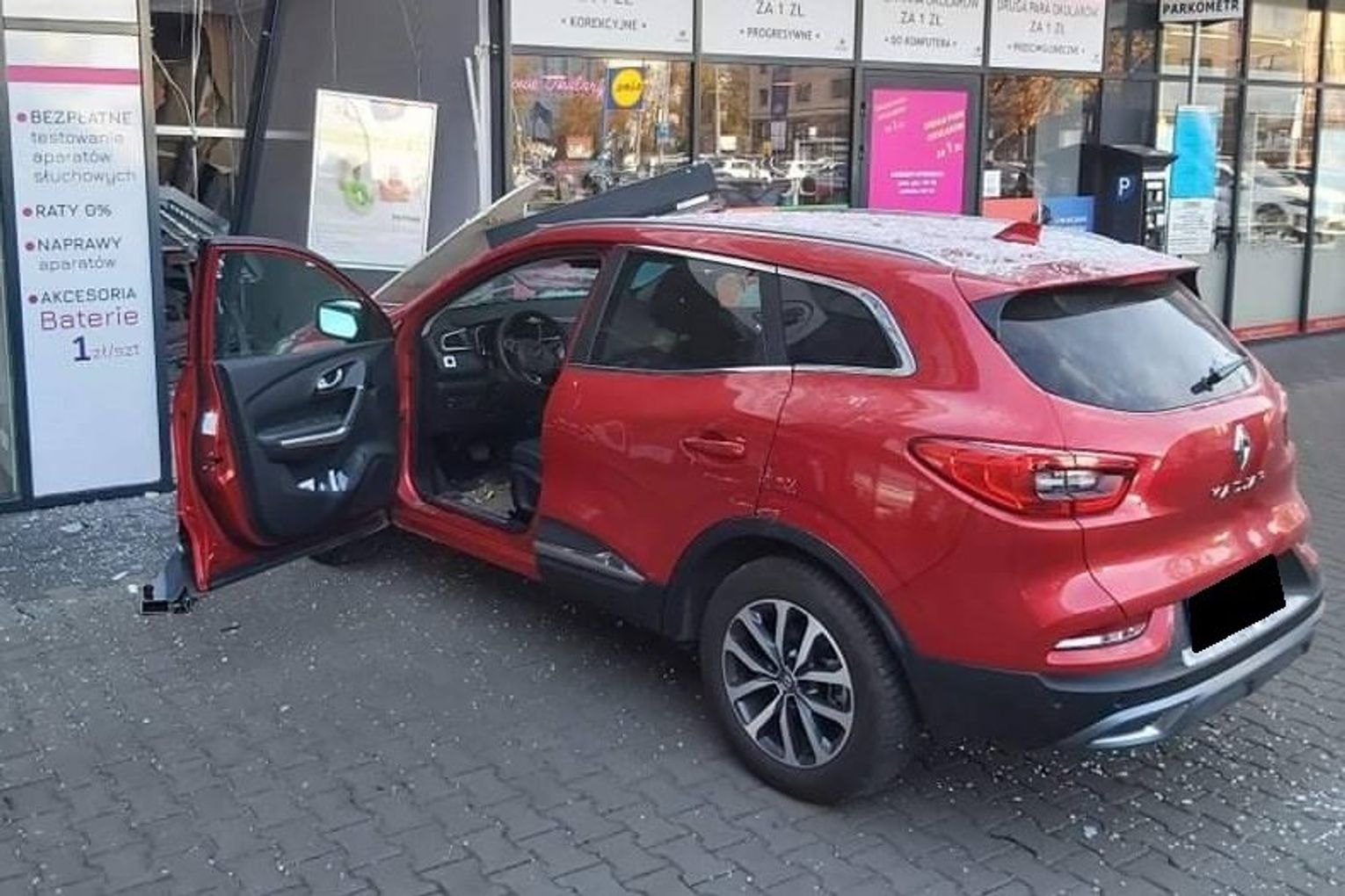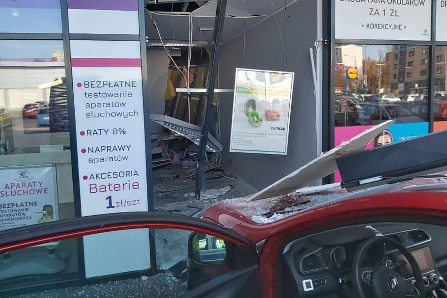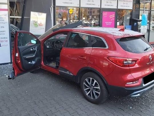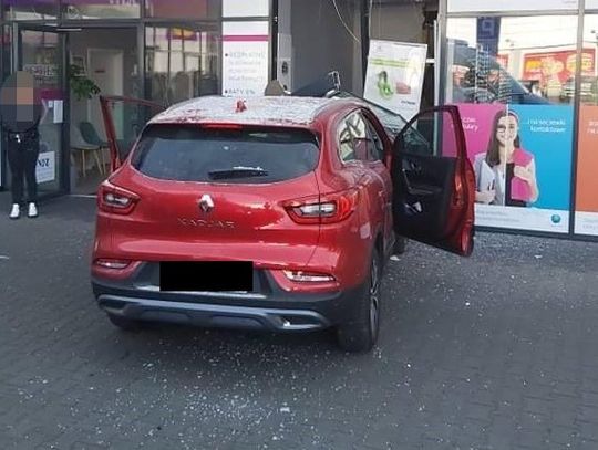 W efekcie jego samochód ruszył z impetem do przodu i wjechał w witrynę sklepu. W chwili zdarzenia w pomieszczeniu przebywał pracownik. Na całe szczęście nie siedział on przy biurku ustawionym pod ścianą zniszczoną przez samochód i nic mu się nie stało.