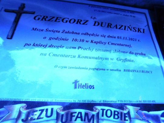 Prochy Zmarłego zostaną złożone do grobu na Cmentarzu Komunalnym w Gryfinie.