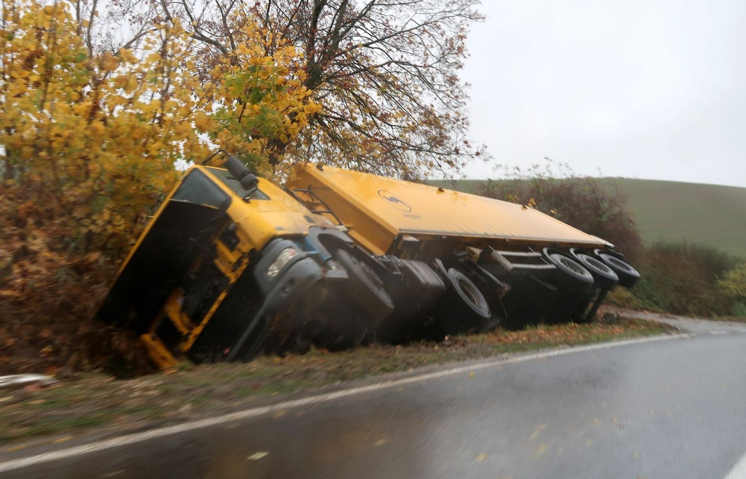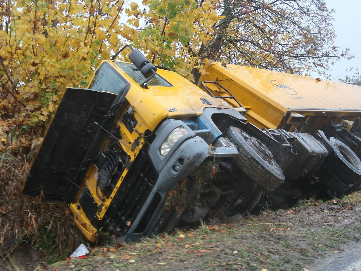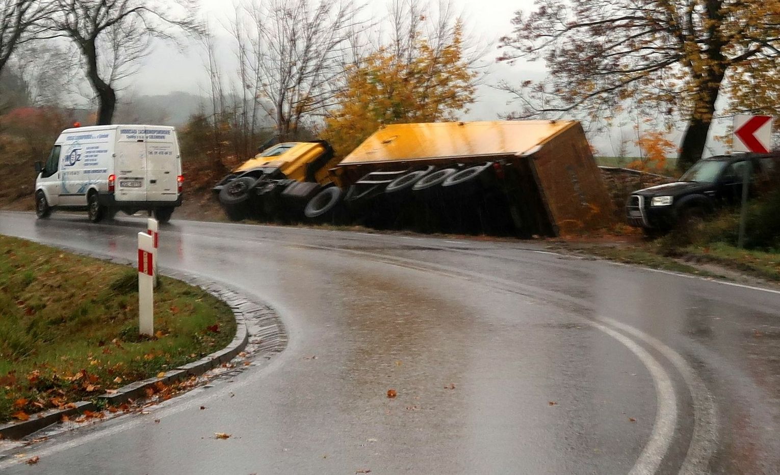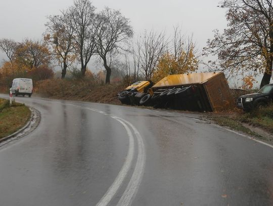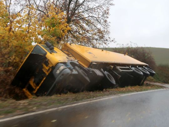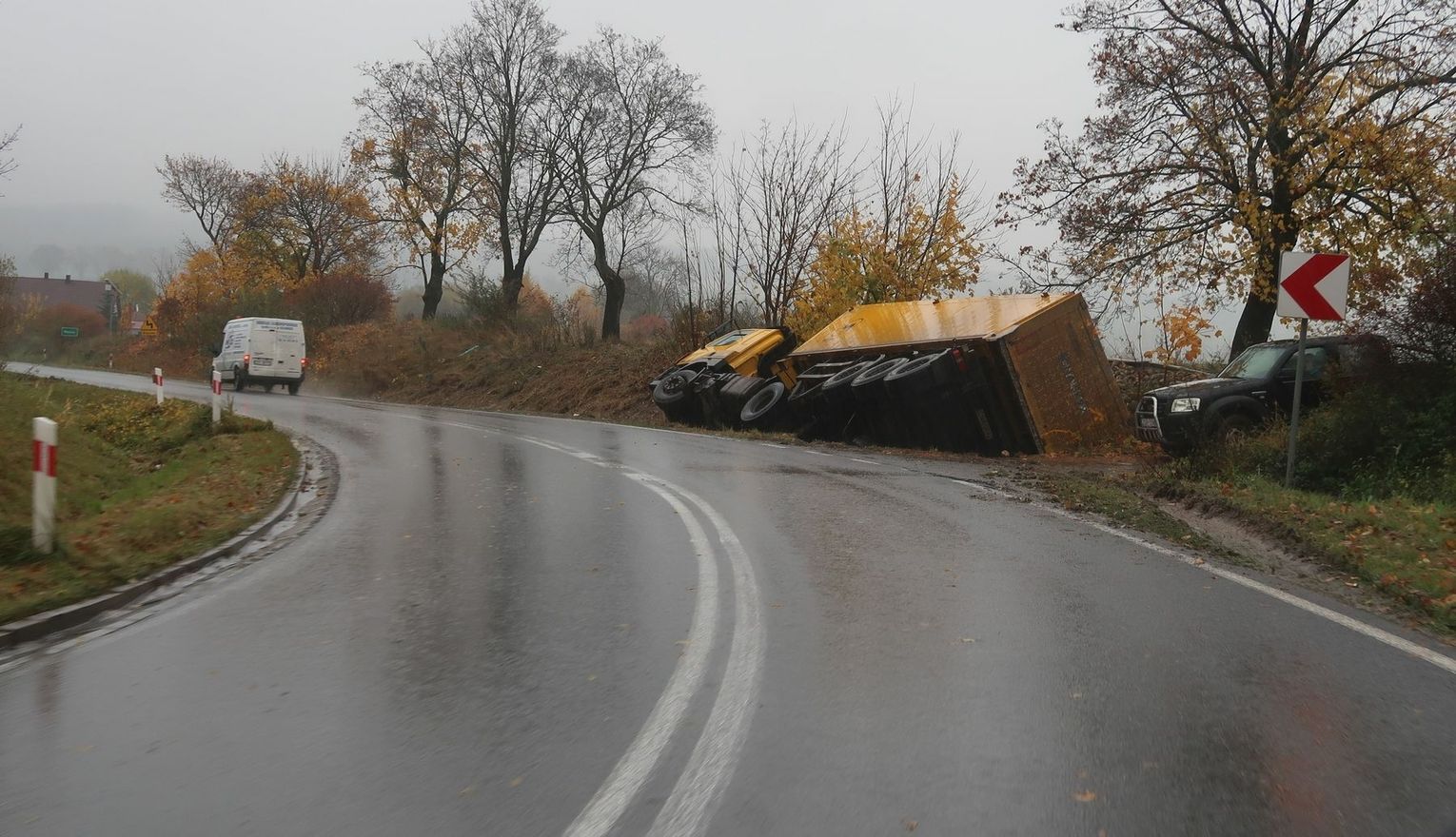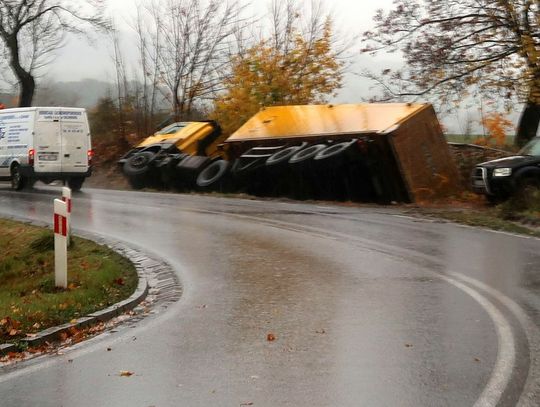 Wczoraj z tego samego miejsca usunięto inny pojazd siodłowy z naczepą. Do wypadku doszło także na zakręcie.
