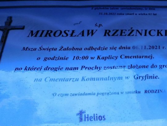 Prochy Zmarłego zostaną złożone do grobu na Cmentarzu Komunalnym w Gryfinie.