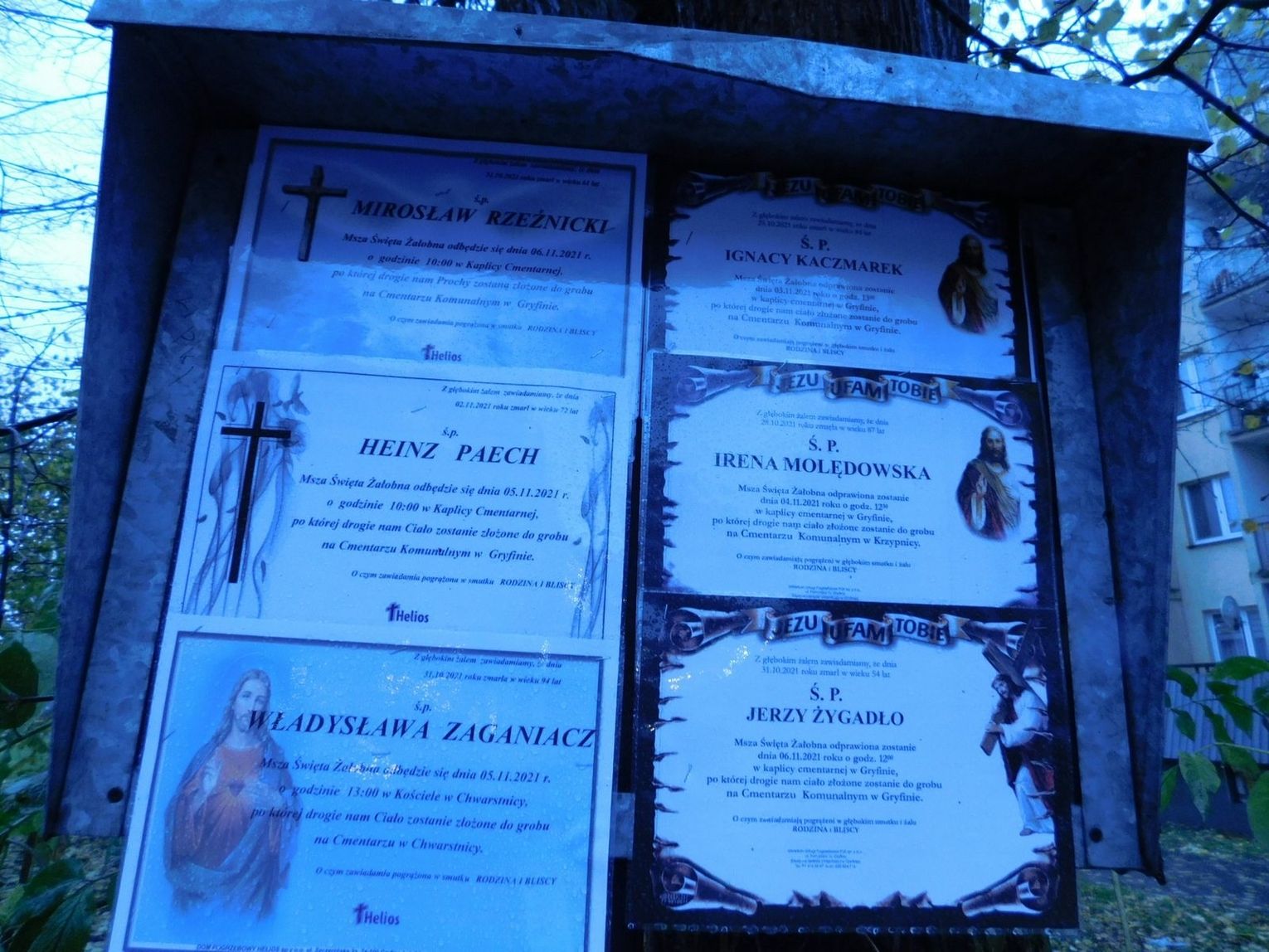 Na tablicach informacyjnych umieszczone są dziś (2 listopada 2021 r.) klepsydry z następującymi nazwiskami: