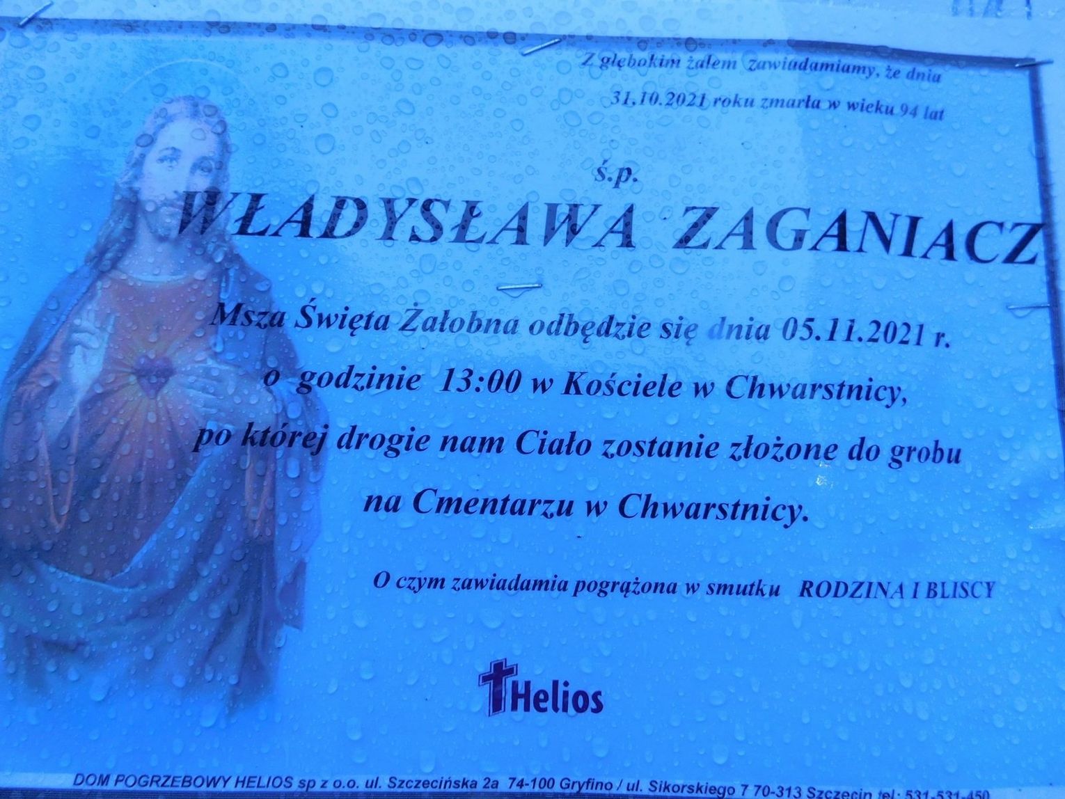 Władysława Zaganiacz – zmarła 31 października 2021 r. w wieku 94 lat.