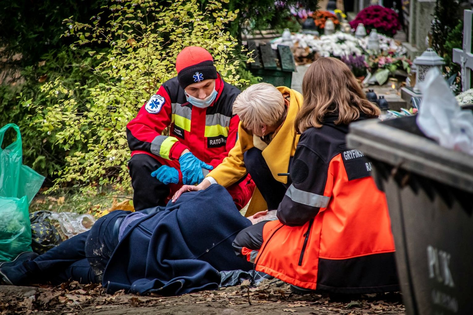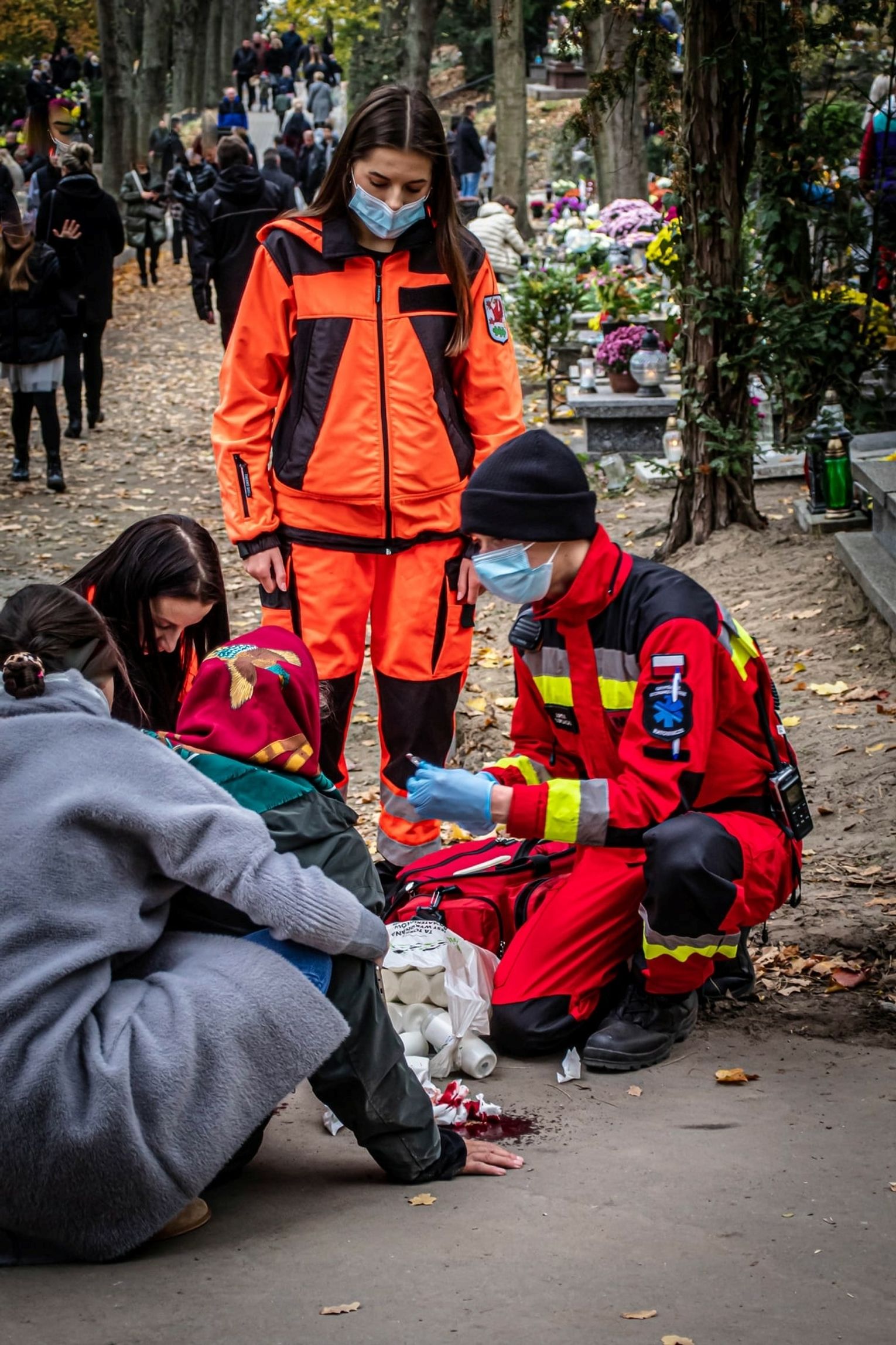 - W trakcie naszej obecności udzielaliśmy pomocy 4 osobom, w tym jedna wymagała interwencji zespołu ratownictwa medycznego, jedną poszkodowaną skierowaliśmy na pilną konsultacje chirurgiczną. Natomiast dwojgu poszkodowanym została udzielona kwalifikowana pierwsza pomoc, bez konieczności skierowania w ramach dalszych czynności medycznych - informują członkowie Gryfińskiego Stowarzyszenia Ratowniczego, którzy wspólnie z funkcjonariuszami straży miejskiej w oraz Komendy Powiatowej Policji dbali o bezpieczeństwo osób nawiedzających gryfiński Cmentarz Komunalny.