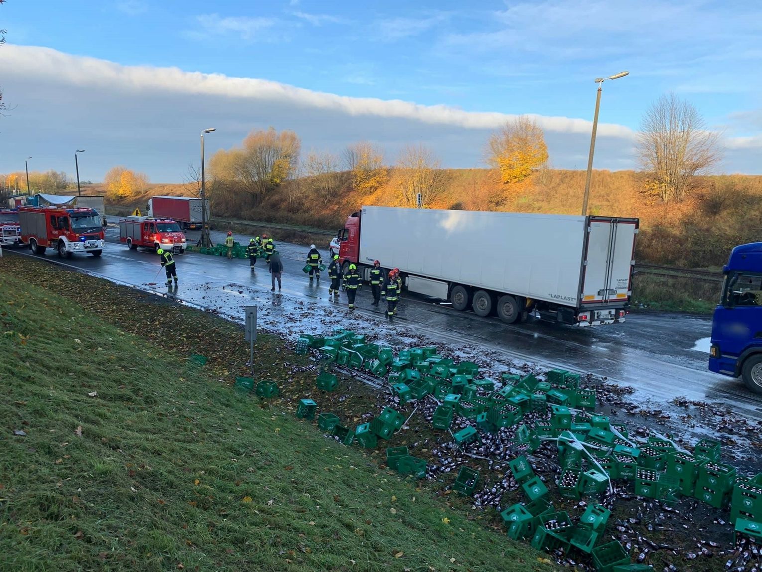 Dzisiaj 8 listopada 2021 roku, około godziny 8:03 do stanowiska kierowania komendanta powiatowego Państwowej Straży Pożarnej wpłynęło zgłoszenie o rozsypanym ładunku piwa na drodze krajowej nr 10.