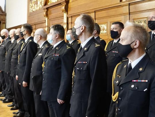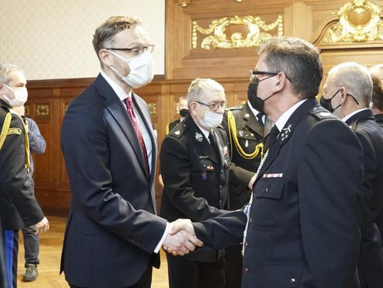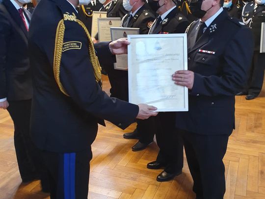 Podczas uroczystości st. bryg. w stanie spoczynku Albin Piątkowski; prezes Zarządu Wojewódzkiego Związku Emerytów i Rencistów Pożarnictwa jednocześnie prezes Honorowego Zarządu Głównego Związku Emerytów i Rencistów Pożarnictwa wręczył odznaki honorowe za zasługi dla Emerytów i Rencistów Pożarnictwa.