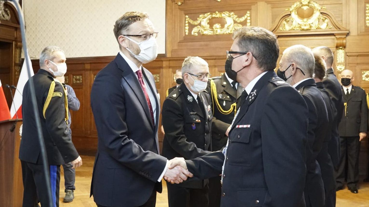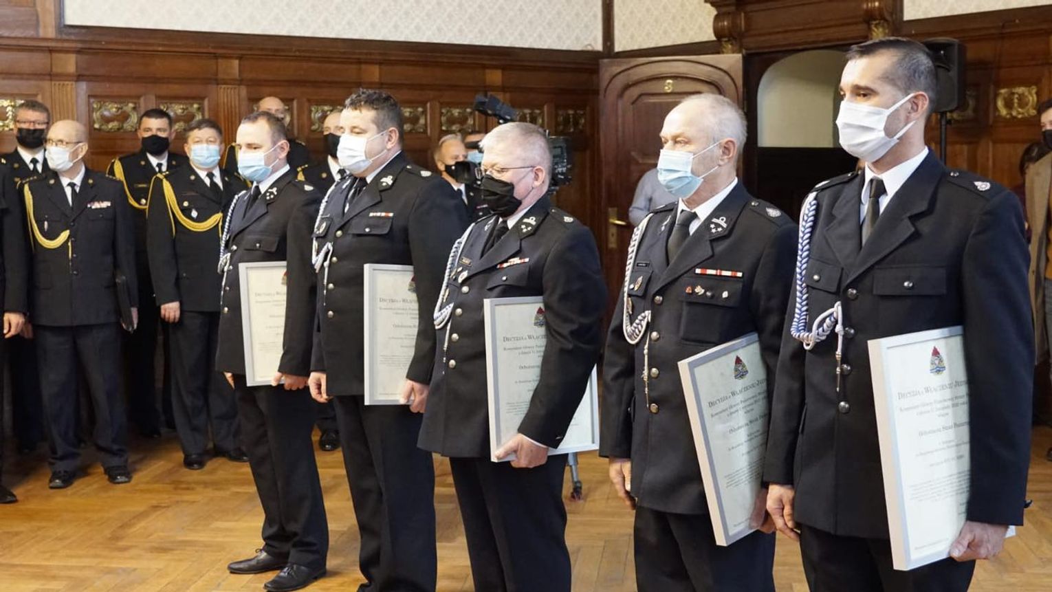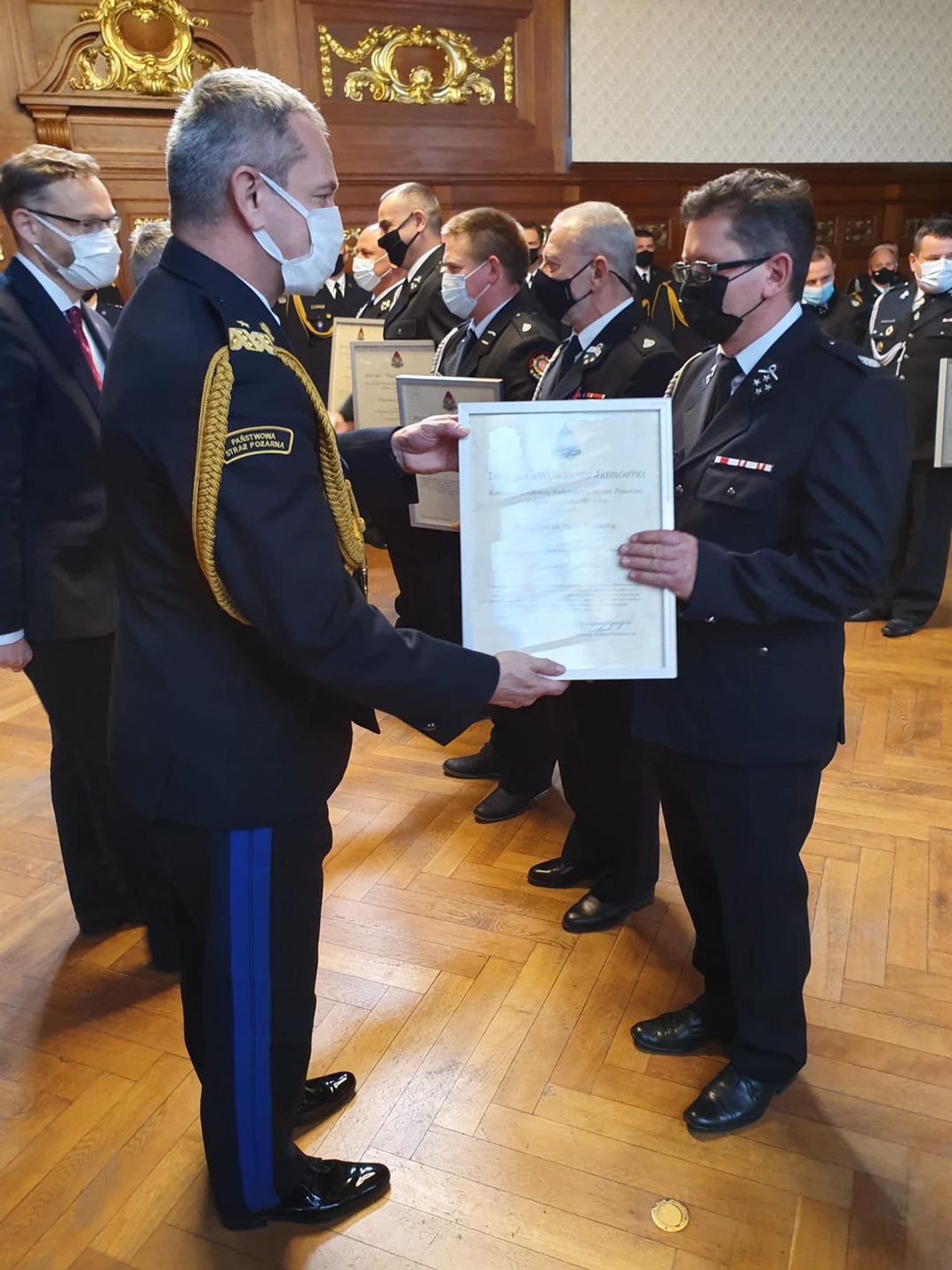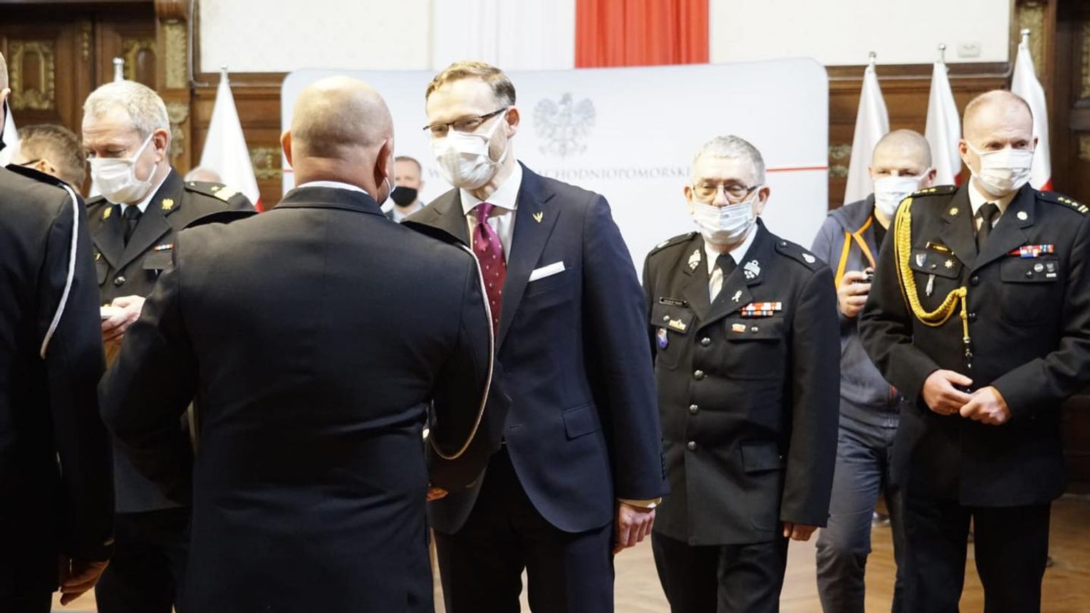 Wyróżnieni to st. bryg. Kazimierz Lesisz komendant Miejski Państwowej Straży Pożarnej w Szczecinie oraz st. bryg. Sylwester Podwyszyński – naczelnik Wydziału Kwatermistrzowskiego Komendy Wojewódzkiej Państwowej Straży Pożarnej w Szczecinie.