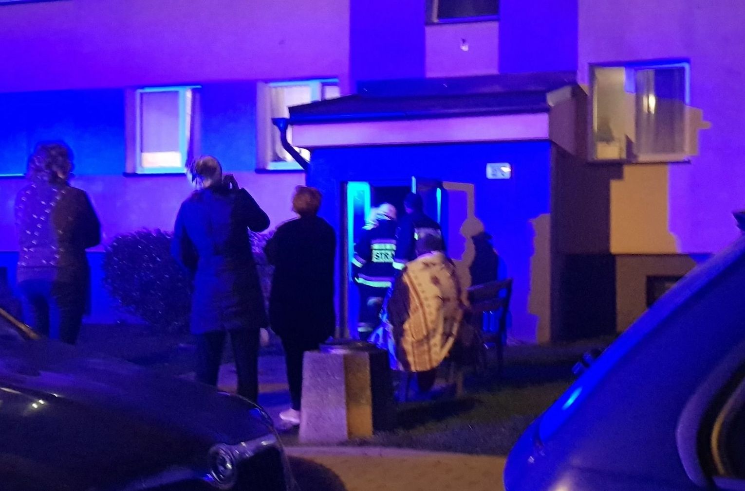 Strażacy, pukając do każdego mieszkania w bloku, zgodnie z procedurami kazali wszystkim lokatorom z dwóch klatek wyjść na zewnątrz ze względu na duże zadymienie.