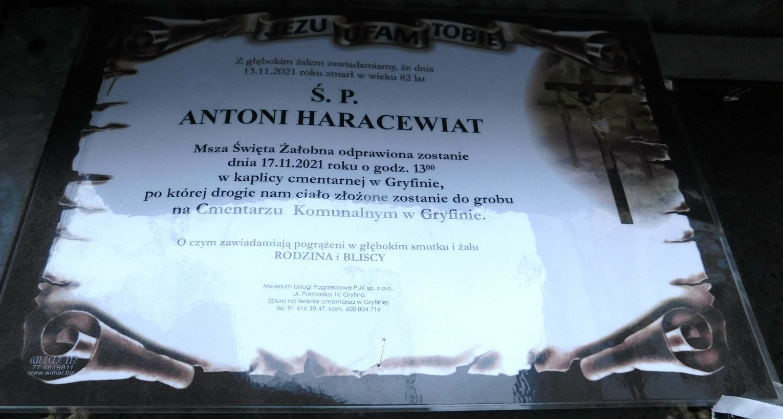 Antoni Haracewiat - zmarł 13 listopada 2021 r. w wieku 82 lat.