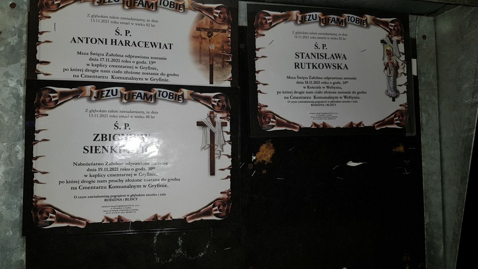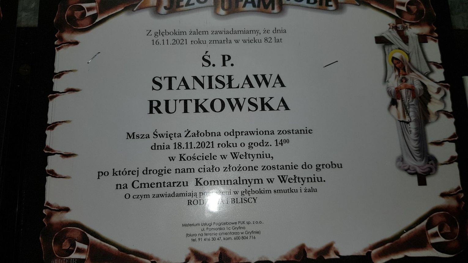 Nabożeństwo żałobne odprawione zostanie 19 listopada 2021 r. o godz. 10.00 w kaplicy cmentarnej w Gryfinie.