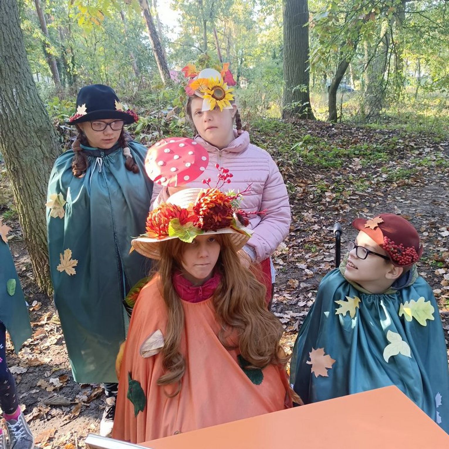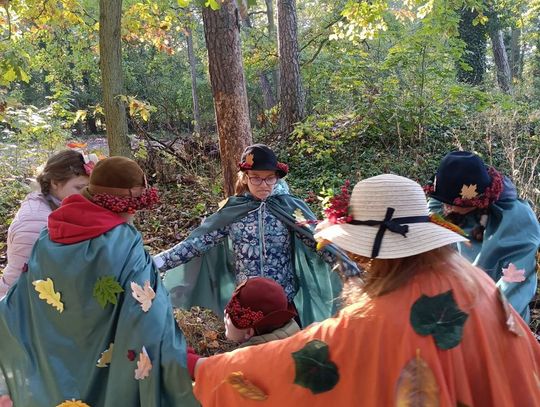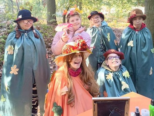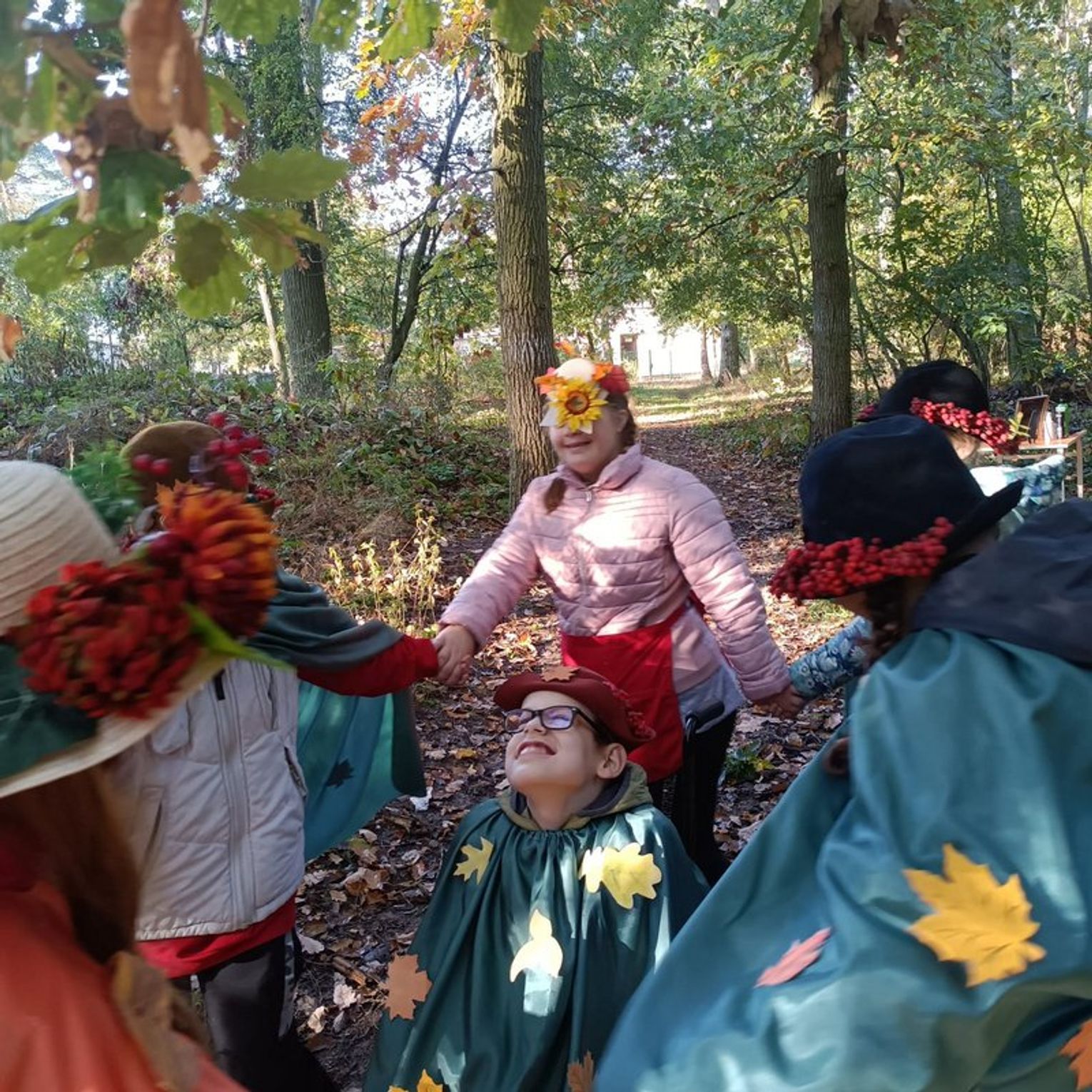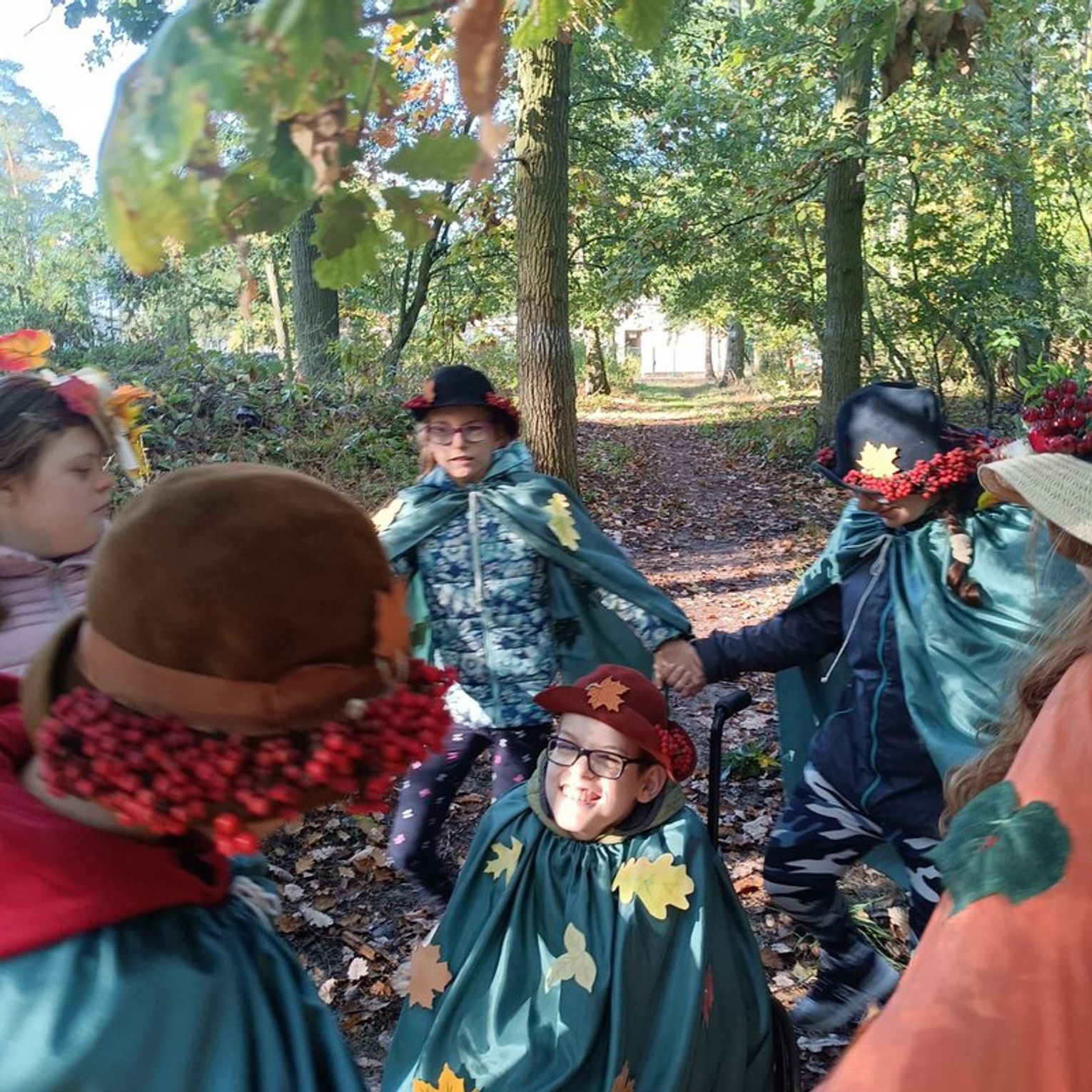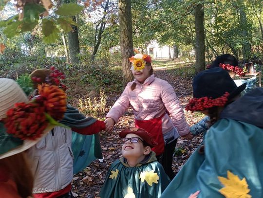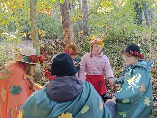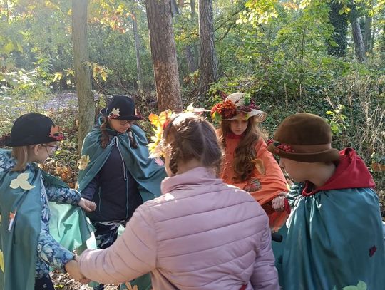 Uczniowie przedstawili krótką scenkę do wiersza Danuty Gellner „Jesień u fryzjera”. Nasi młodzi artyści wcielili się w postaci Pani Jesieni, fryzjera i leśnych ludków. W pięknych okolicznościach przyrody spacerowali po lesie odgrywając swoje role. Wszyscy świetnie się bawili.