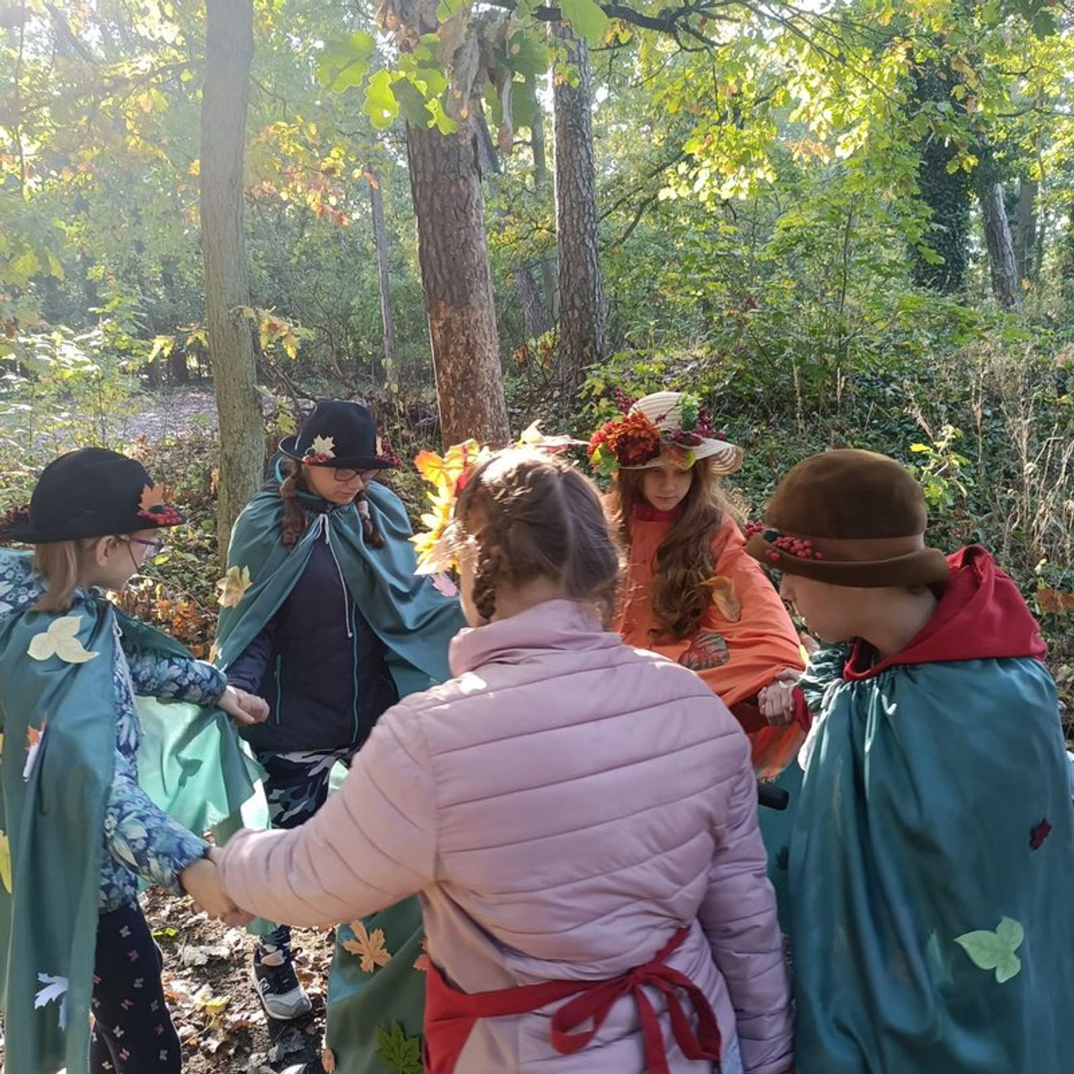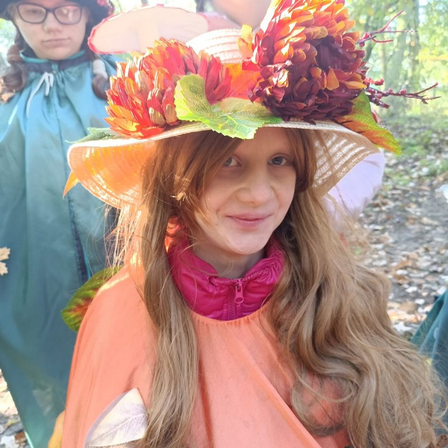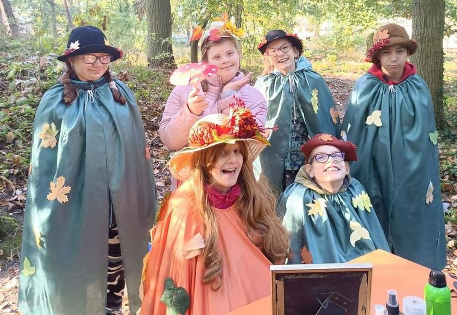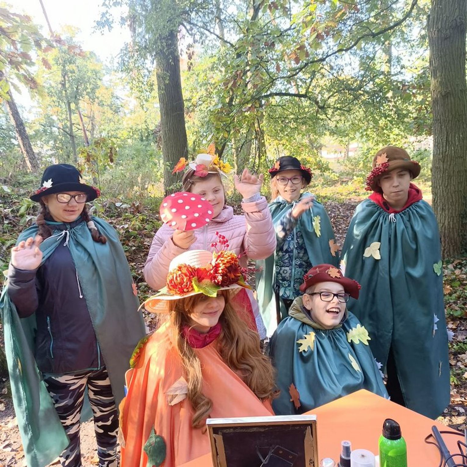 Uczniowie przedstawili krótką scenkę do wiersza Danuty Gellner „Jesień u fryzjera”. Nasi młodzi artyści wcielili się w postaci Pani Jesieni, fryzjera i leśnych ludków. W pięknych okolicznościach przyrody spacerowali po lesie odgrywając swoje role. Wszyscy świetnie się bawili.