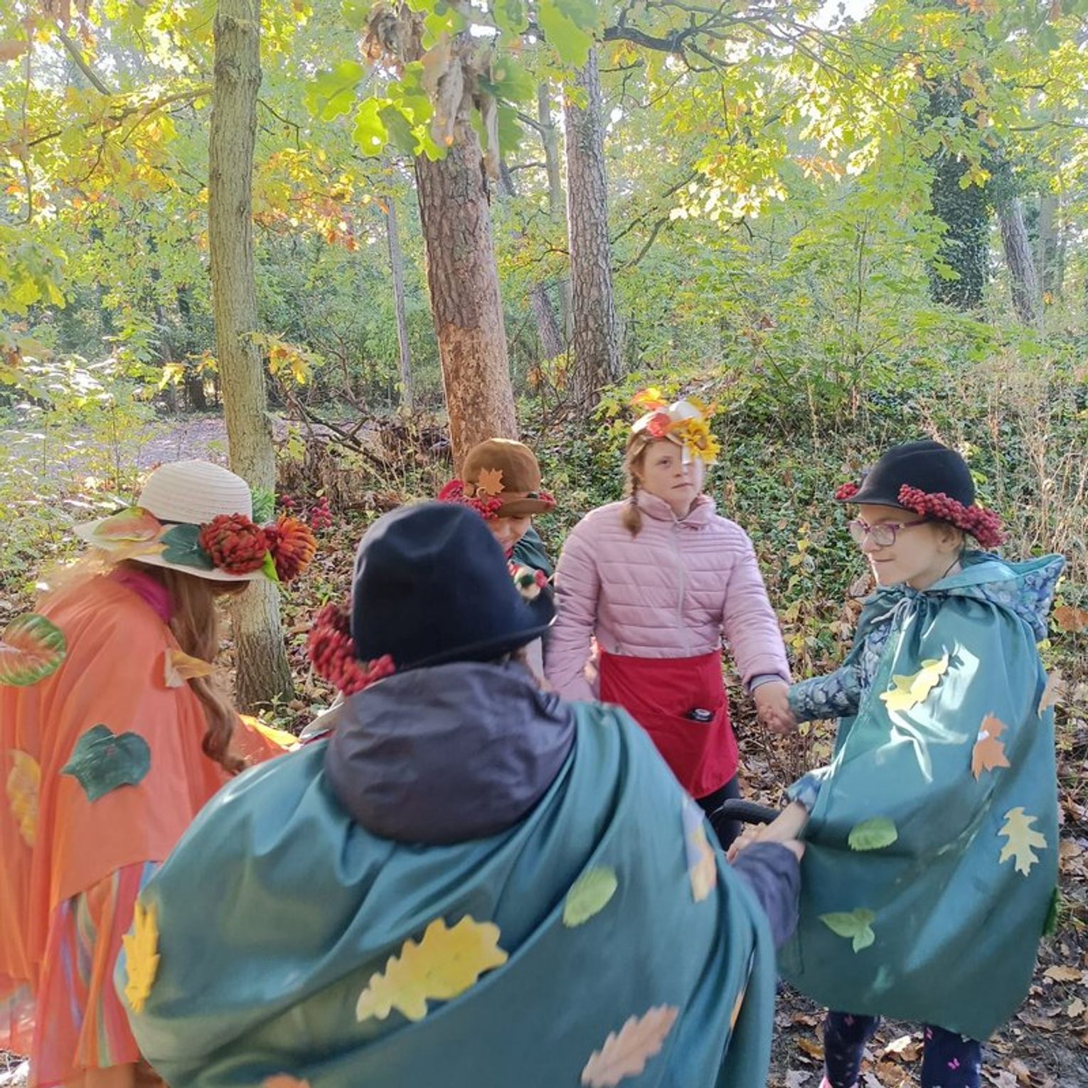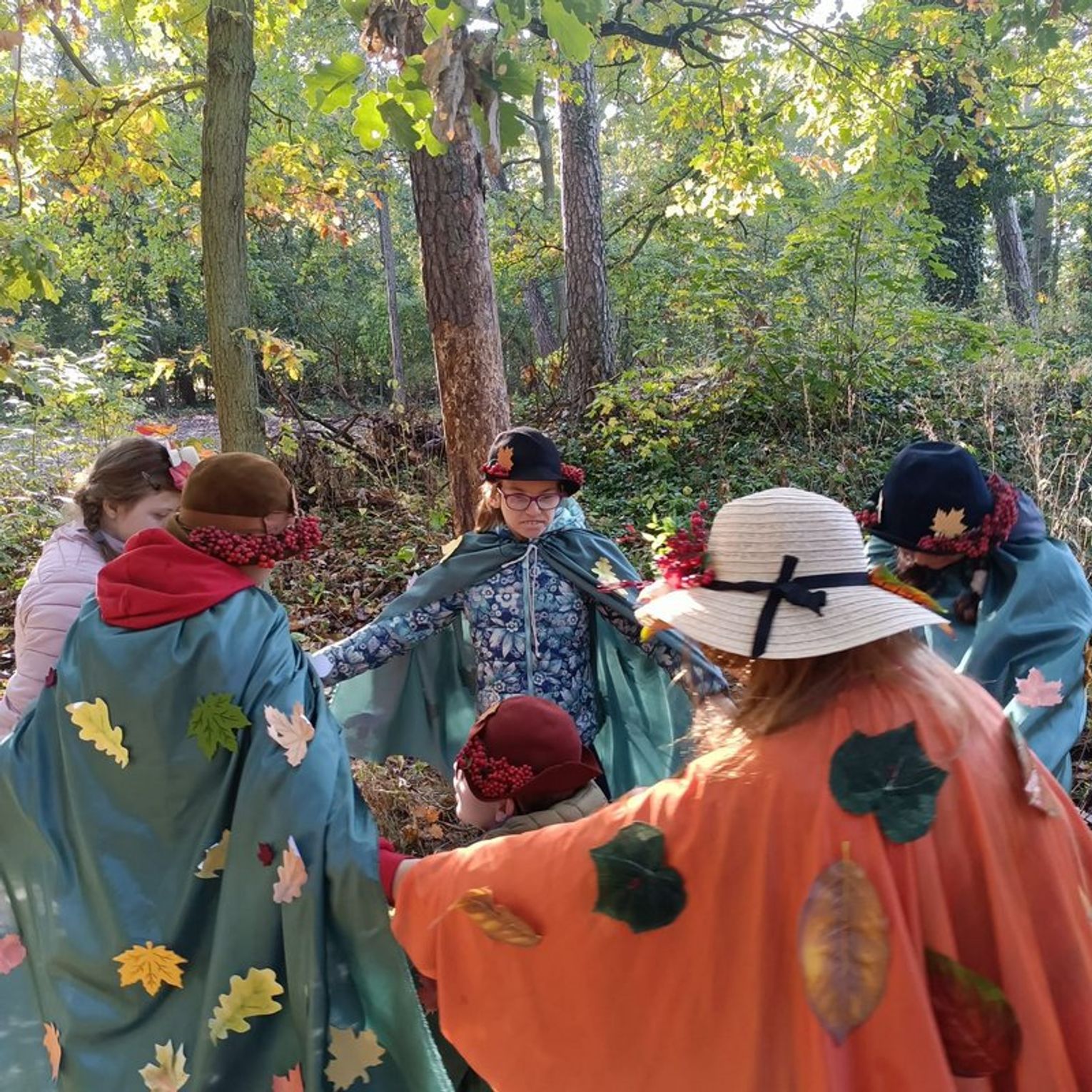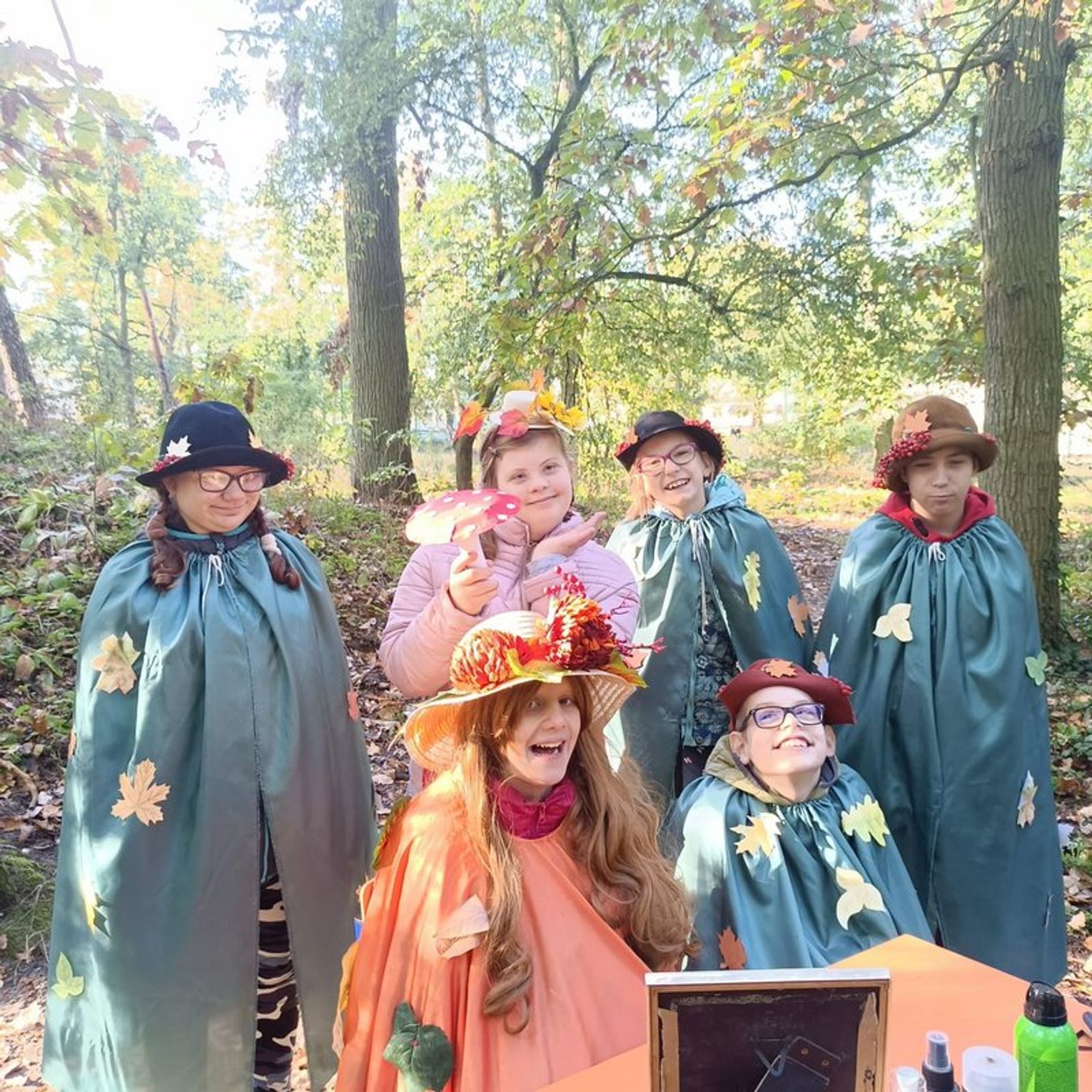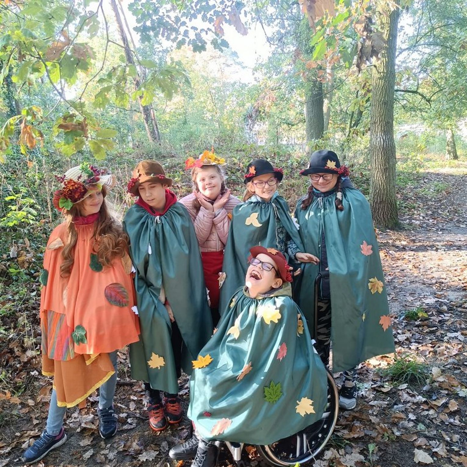 Uczniowie przedstawili krótką scenkę do wiersza Danuty Gellner „Jesień u fryzjera”. Nasi młodzi artyści wcielili się w postaci Pani Jesieni, fryzjera i leśnych ludków. W pięknych okolicznościach przyrody spacerowali po lesie odgrywając swoje role. Wszyscy świetnie się bawili.