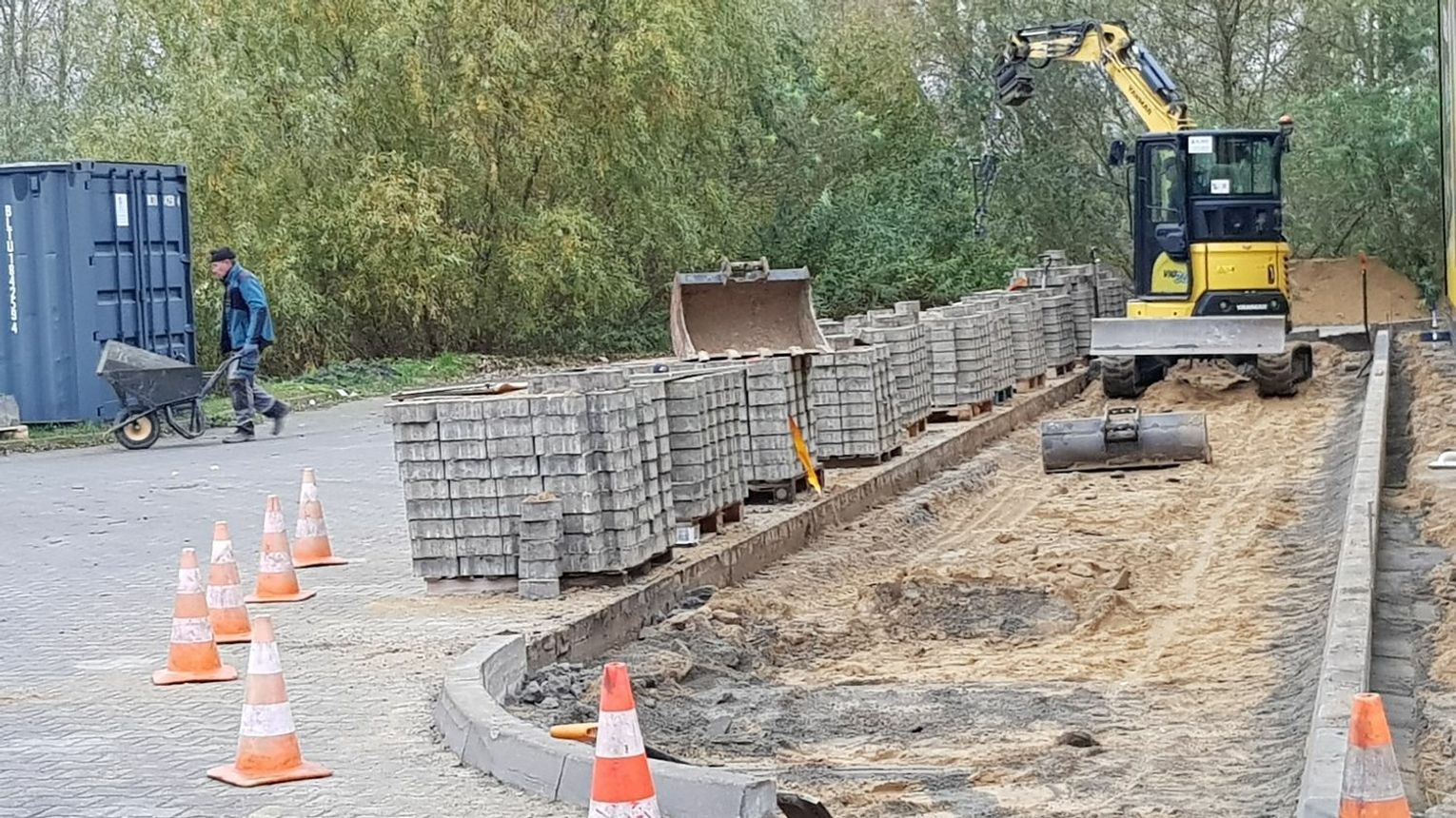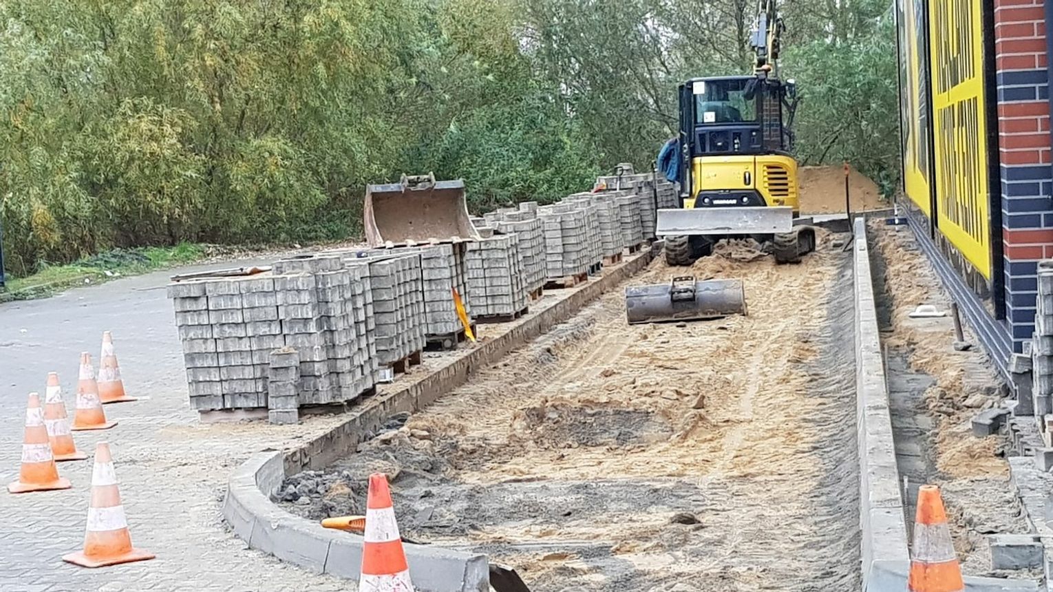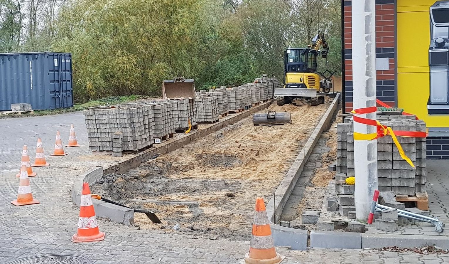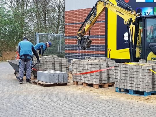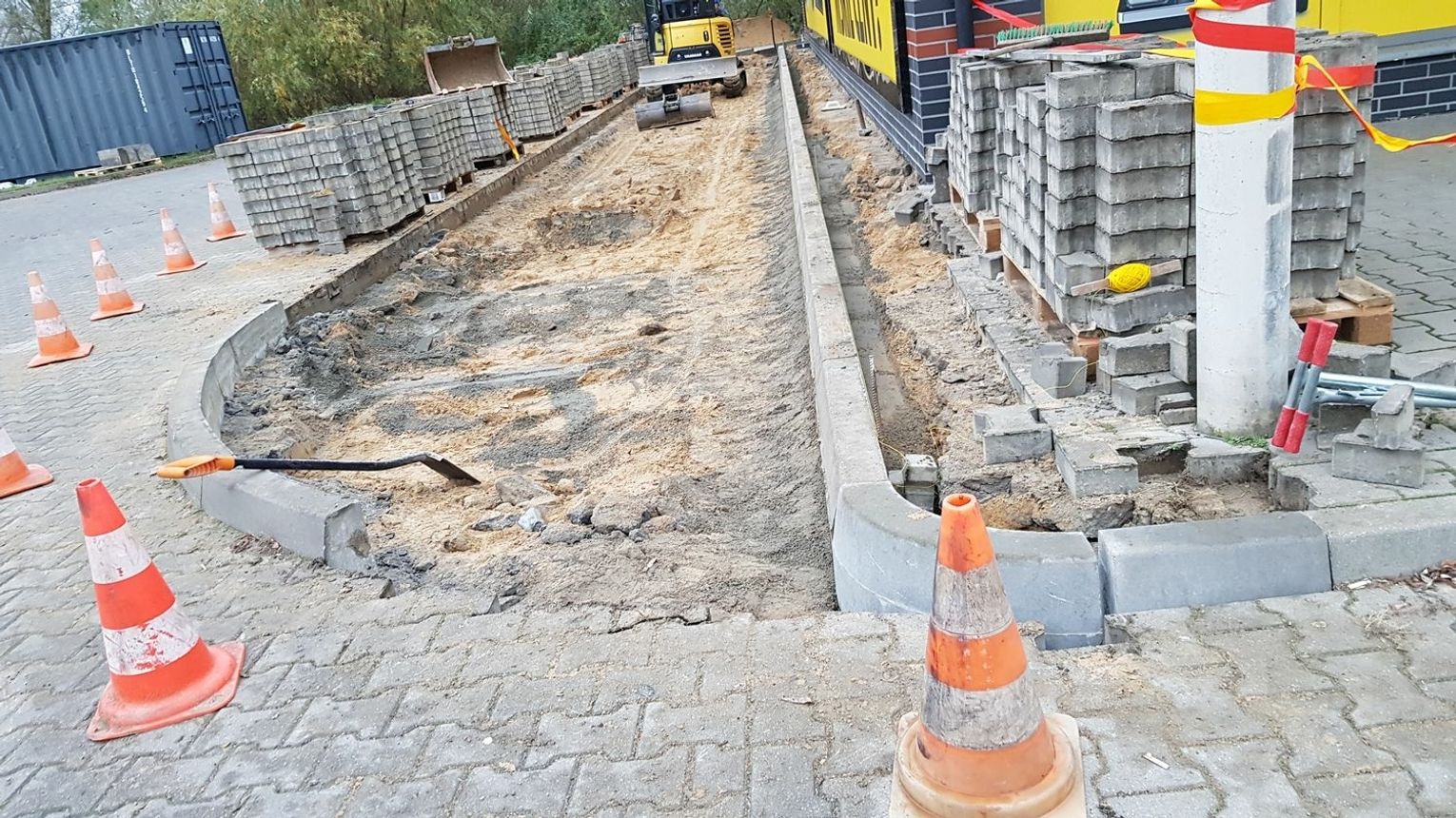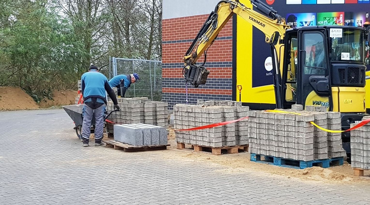 Dziś 17 listopada 2021 r. brukarze rozpoczęli prace przy gryfińskim sklepie Media Expert. Wygląda na to, że przesunięty zostanie krawężznik. W nowe miejsce układane są kostki polbrukowe.