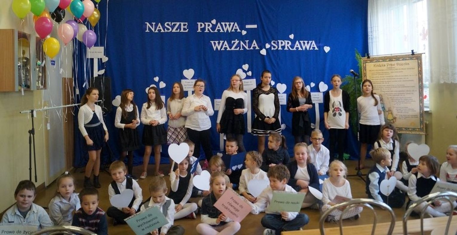 Dzieci w wierszach i piosenkach przypomniały o swoich prawach, a zaproszeni goście odczytali fragmenty różnych utworów, zawierających najczęściej w nieco żartobliwej formie, najważniejsze prawa dzieci. Na zakończenie zaproszeni goście wspólnie ze wszystkimi pracownikami szkoły zaśpiewali piosenkę nawiązującą do najważniejszych dziecięcych praw, pragnień i marzeń. Finałowym akcentem tego ważnego święta było wypuszczenie w niebo balonów z karteczkami zawierającymi najważniejsze prawa dzieci. Organizatorzy mają jak zwykle nadzieję, że dotrą one jak najdalej, informując wszystkich o najważniejszych prawach najmłodszych.