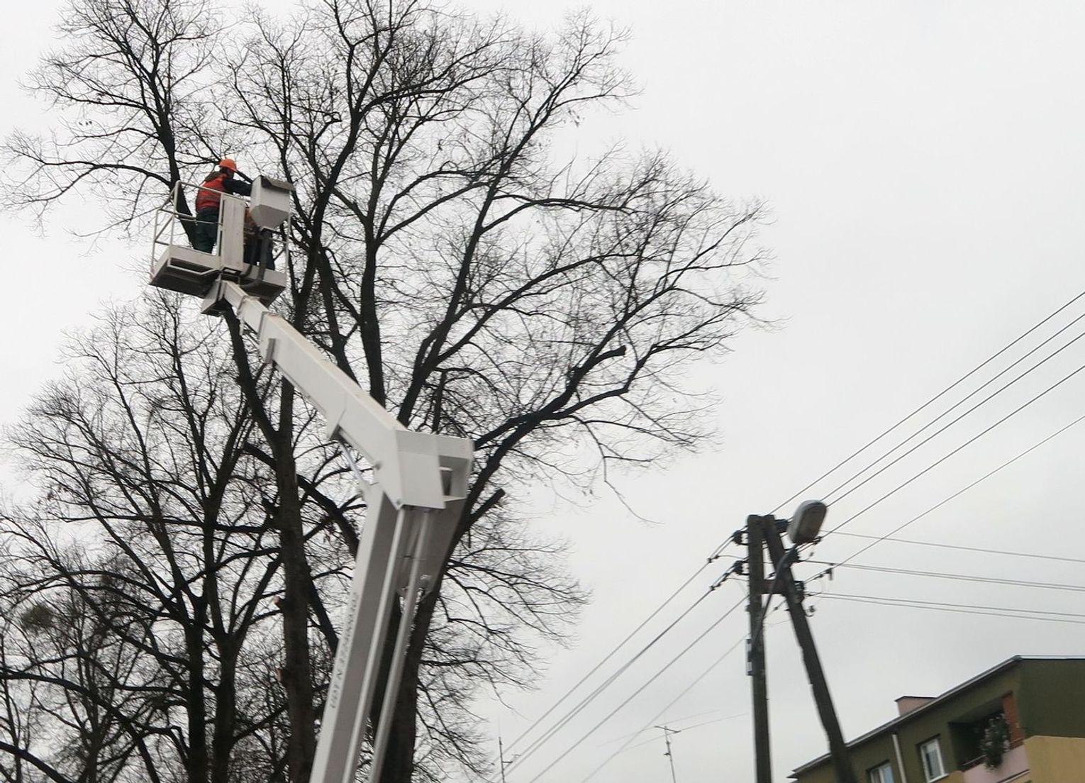 Problem polega na tym, ze dzień jest krótki, a tylko gdy jest jasno PGE GiEK wykonuje prace na wysokości. Wtedy ruch ulicą Łużycką odbywa się jednym pasem wahadłowo, bo z wysoka spadają cięte konary drzew.