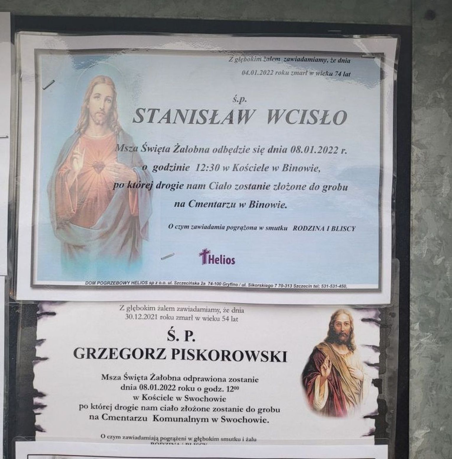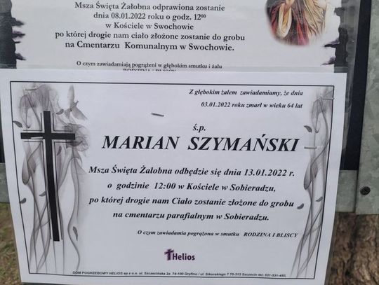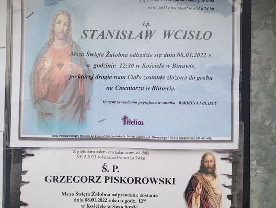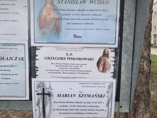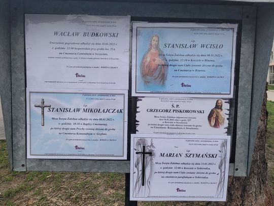 Na tablicach informacyjnych widzimy 6 stycznia 2022 r. kilka nowych klepsydr z następującymi nazwiskami: