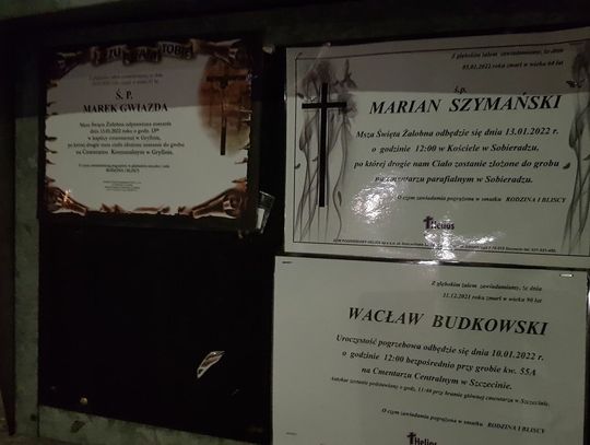 Msza św. żałobna odprawiona zostanie 11 stycznia 2022 r. o godz. 13.00 w kaplicy cmentarnej w Gryfinie.