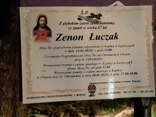 Msza św. pogrzebowa odprawiona zostanie 11 stycznia 2022 r. o godz. 12.00 w kaplicy w Łaziszczach.