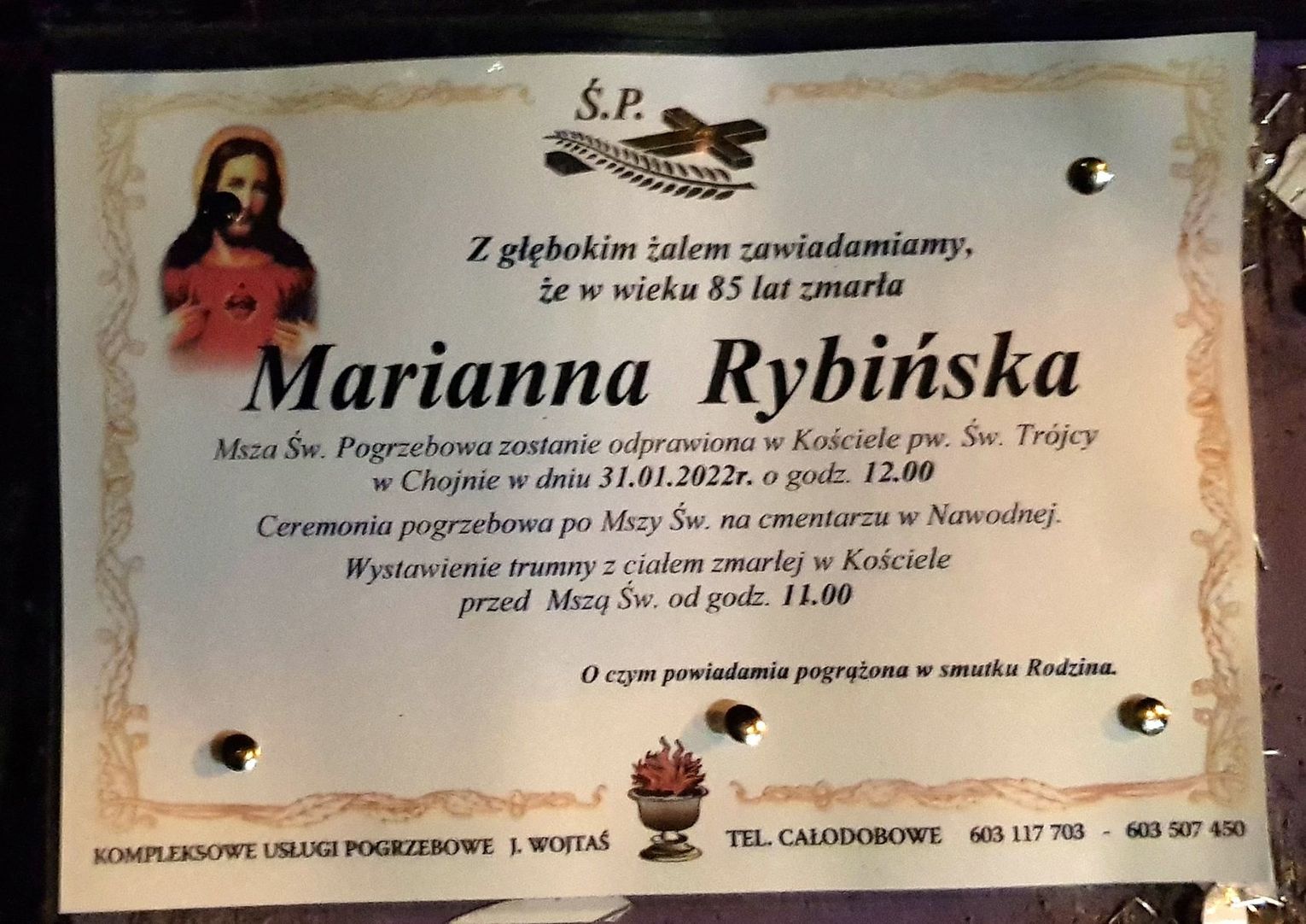 Marianna Rybińska - zmarła w wieku 85 lat.