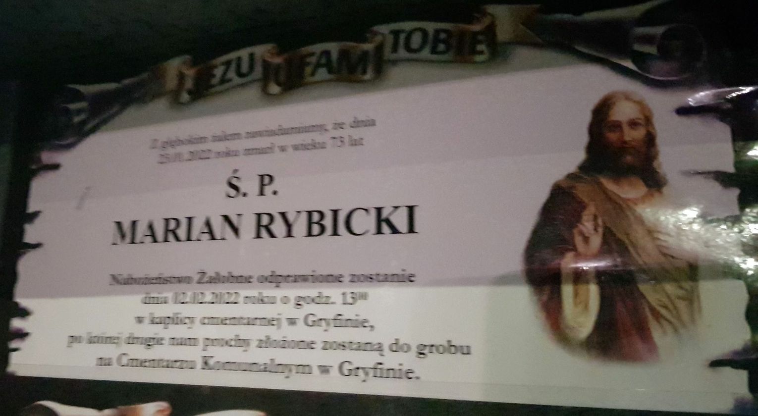Nabożeństwo żałobne odprawione zostanie 2 lutego 2022 r. o godz. 13.00 w kaplicy cmentarnej w Gryfinie.