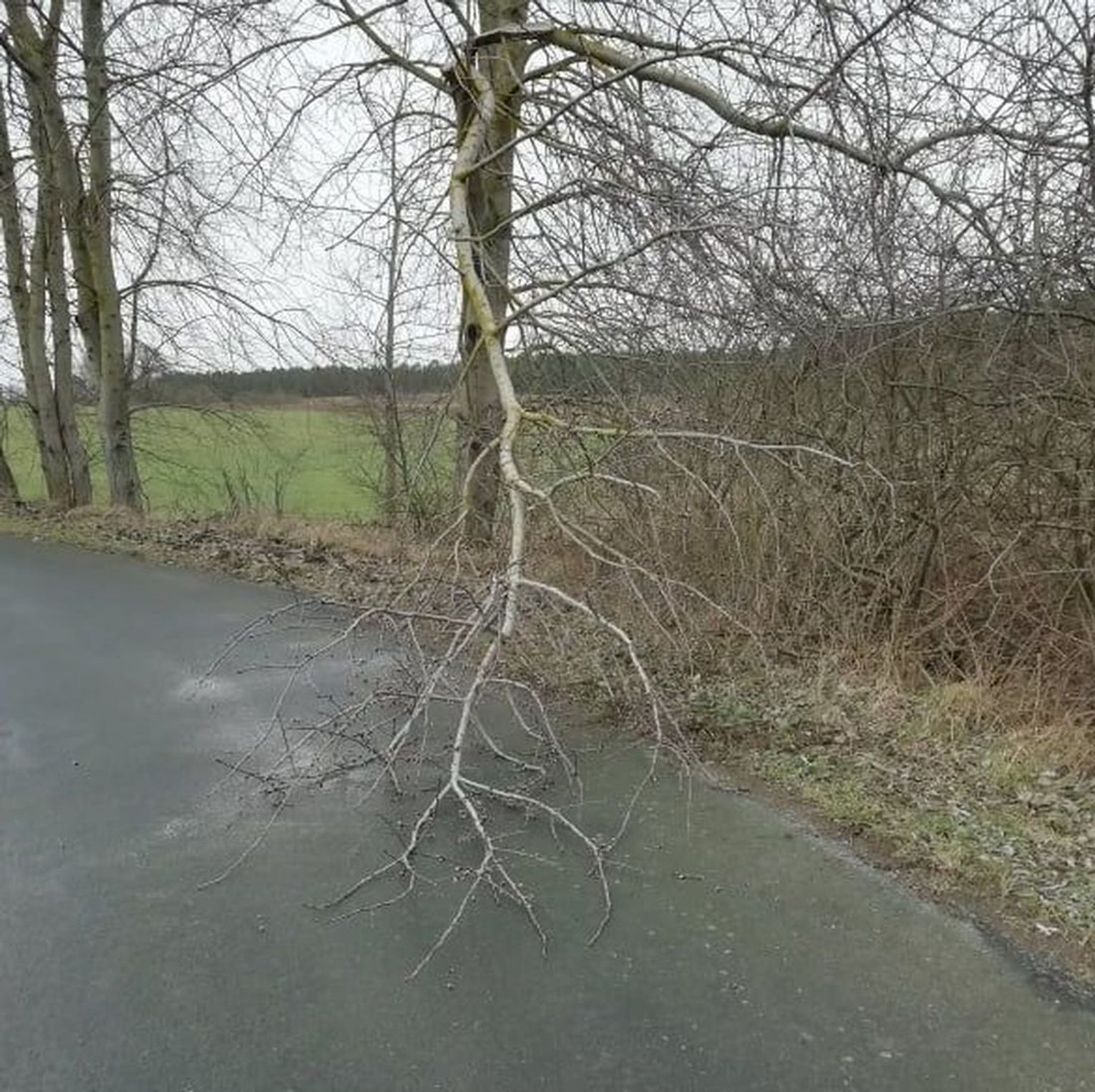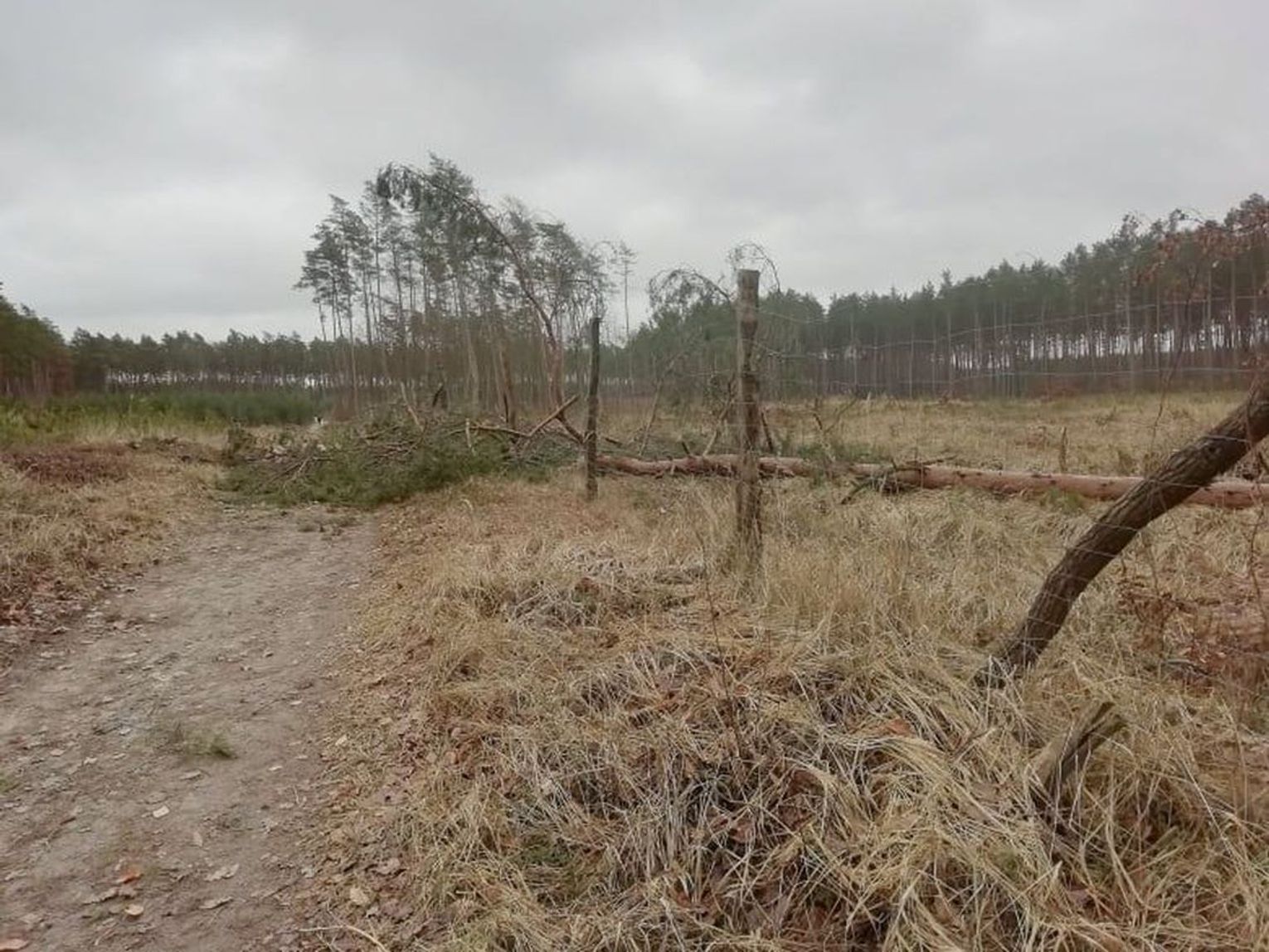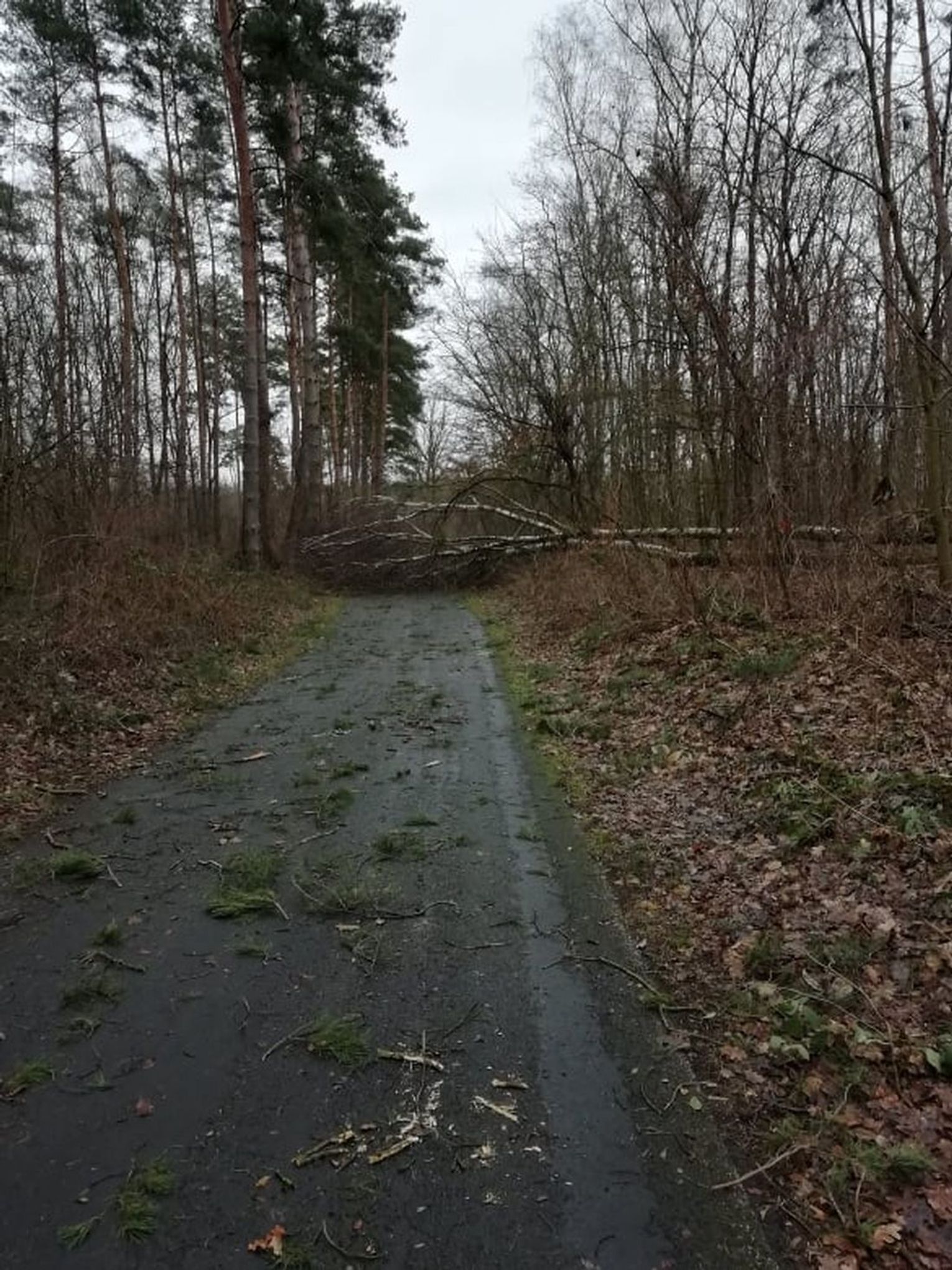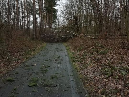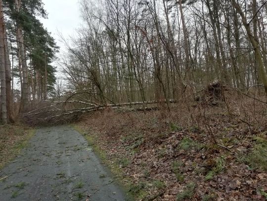 Stara ścieżka rowerowa w Gryfinie prowadząca od ul. Jana Pawła II w kierunku lasu też "odczuła" działanie orkanu "Nadia". Niektóre przejścia zablokowane są przez olbrzymie powalone drzewa.