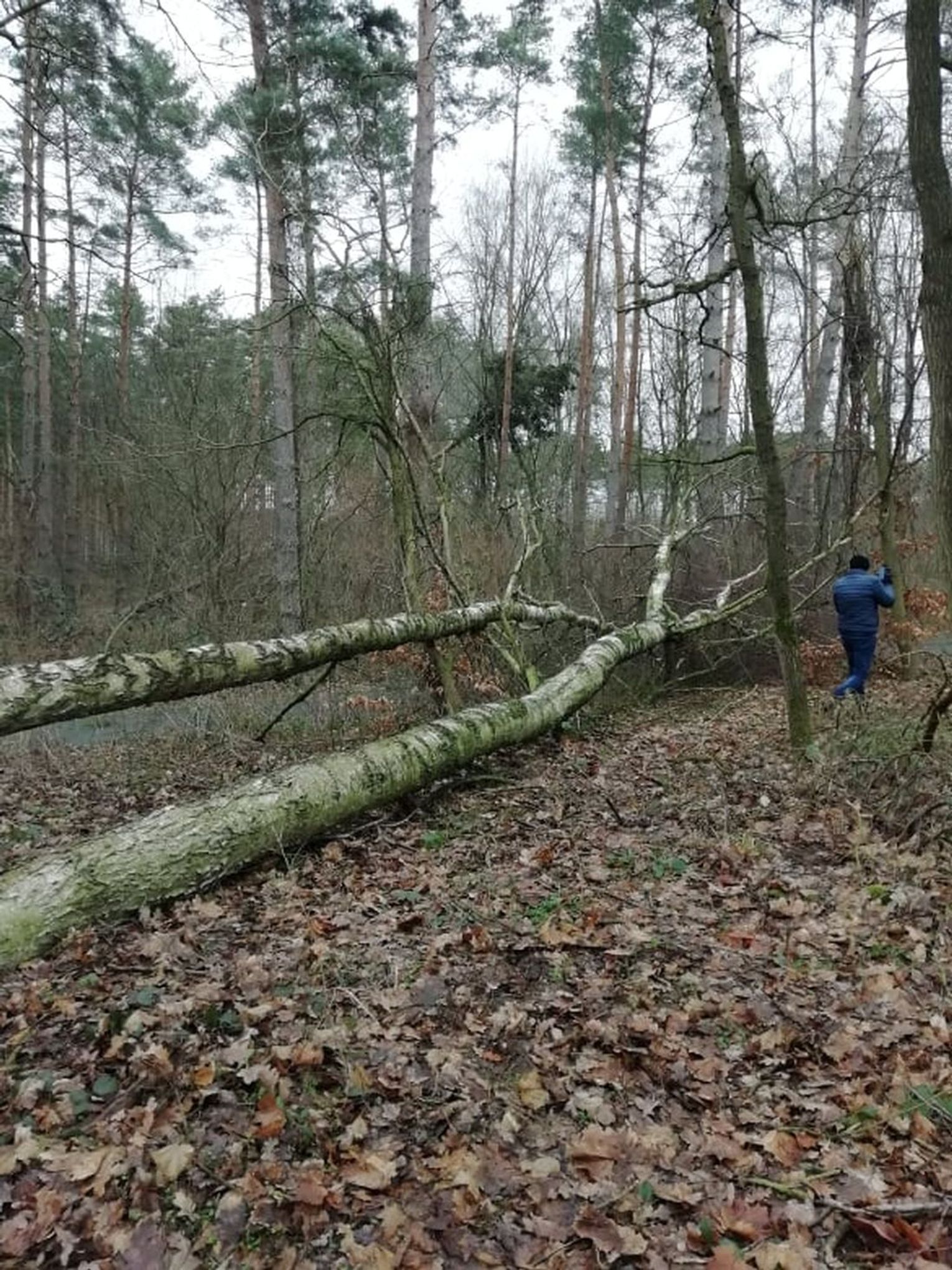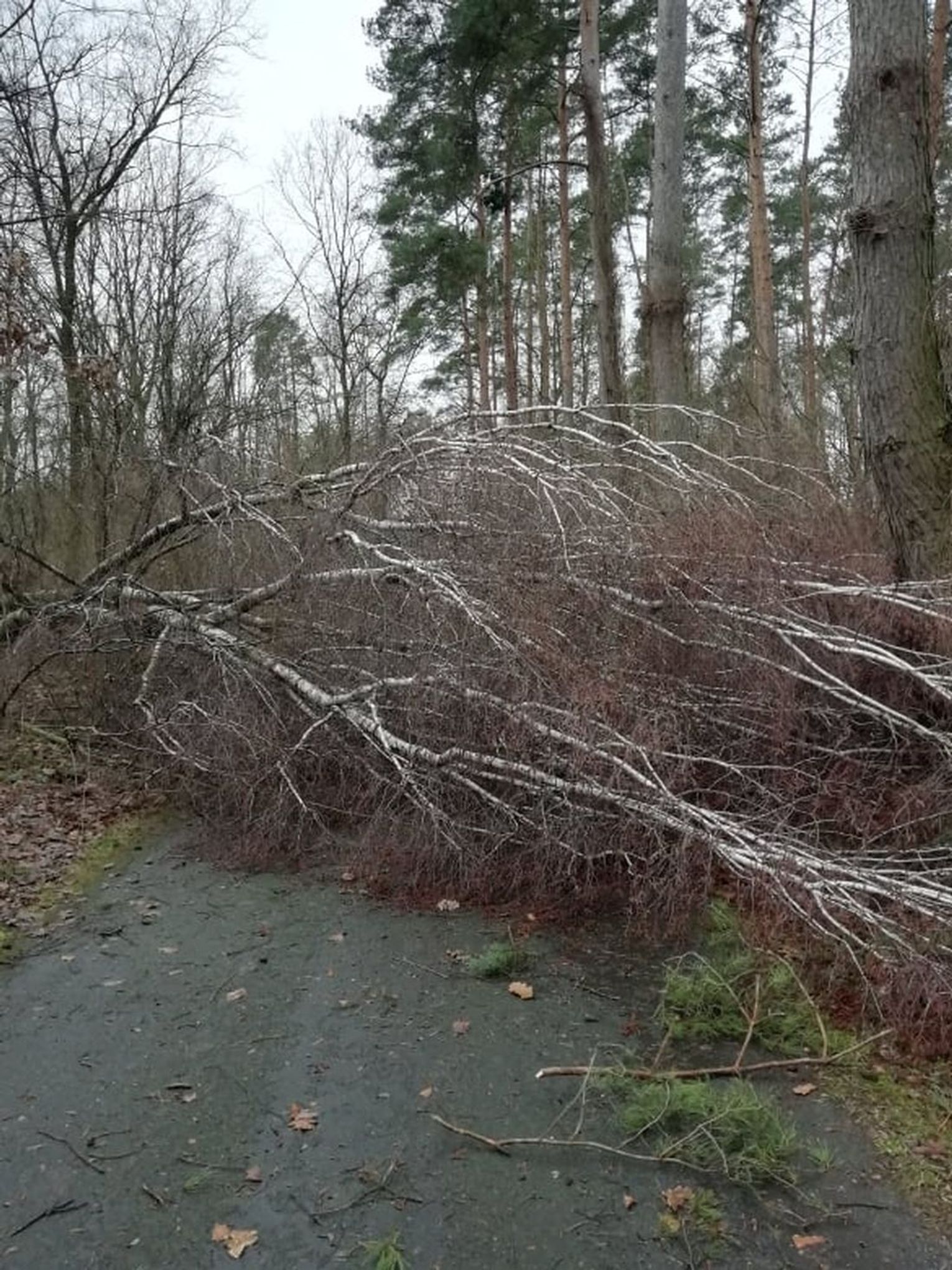 Na ścieżce leży olbrzymia brzoza. Trzeba ją obejść lasem pieszo, aby ponownie wejść na ścieżkę - informuje nas czytelniczka i przysyła zdjęcia.