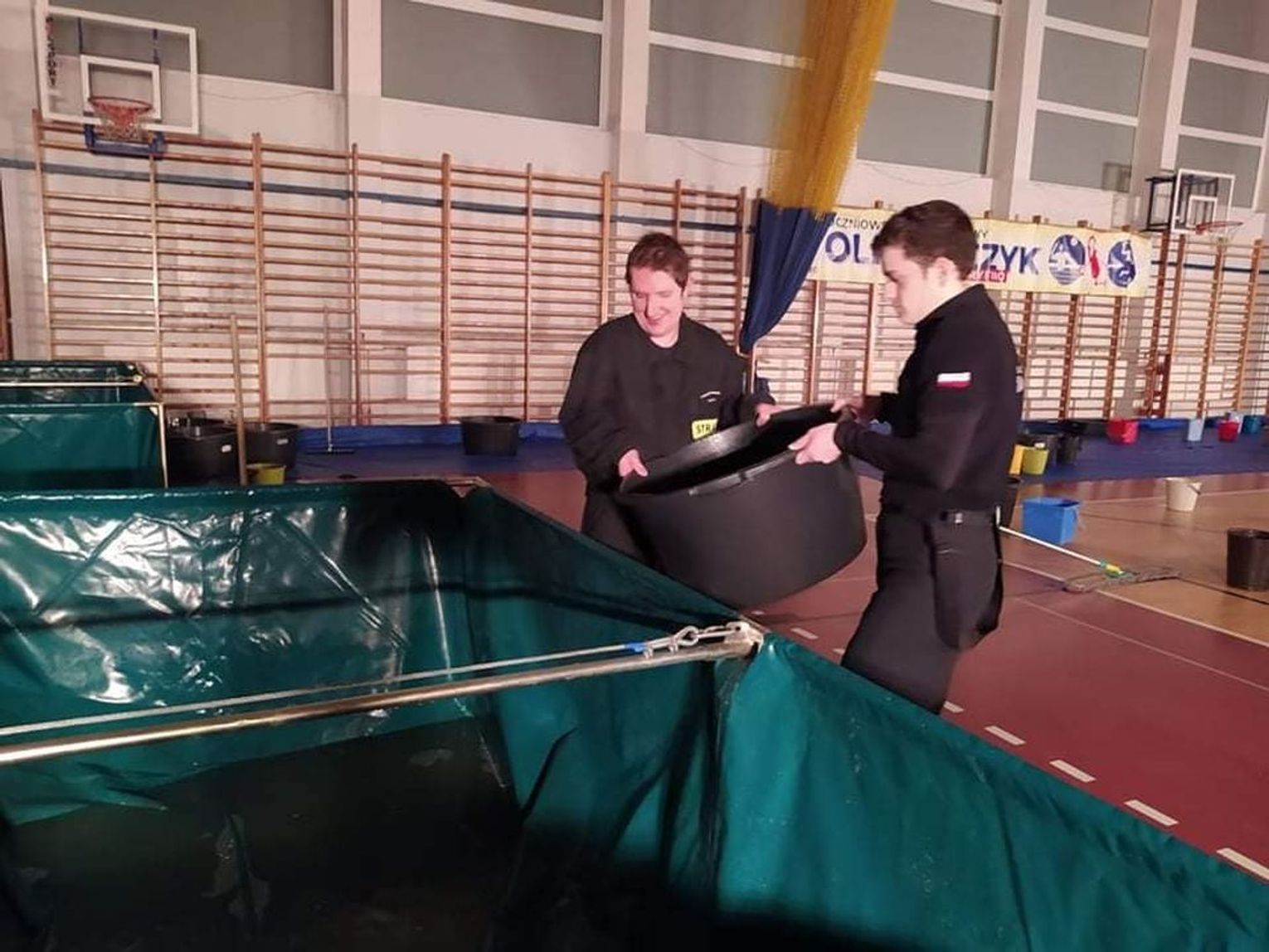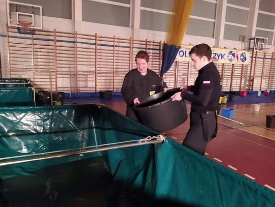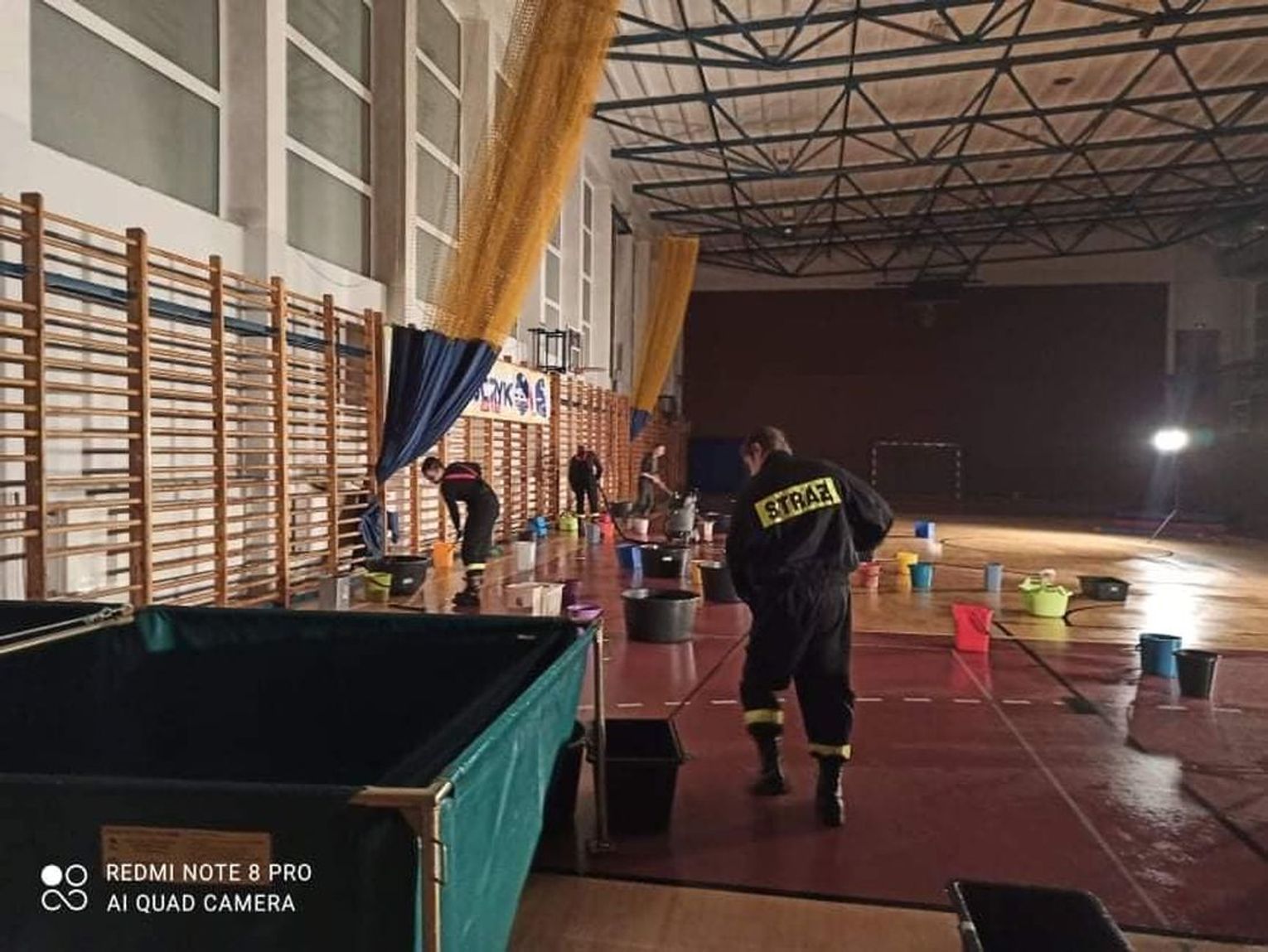 Do prowadzenia od kilku dni działań zabezpieczających salę gimnastyczną w SP 3 zadysponowane zostały m.in. jednostki OSP Raffer Gryfino, OSP Wełtyń, OSP Sobieradz, OSP Chwarstnica.