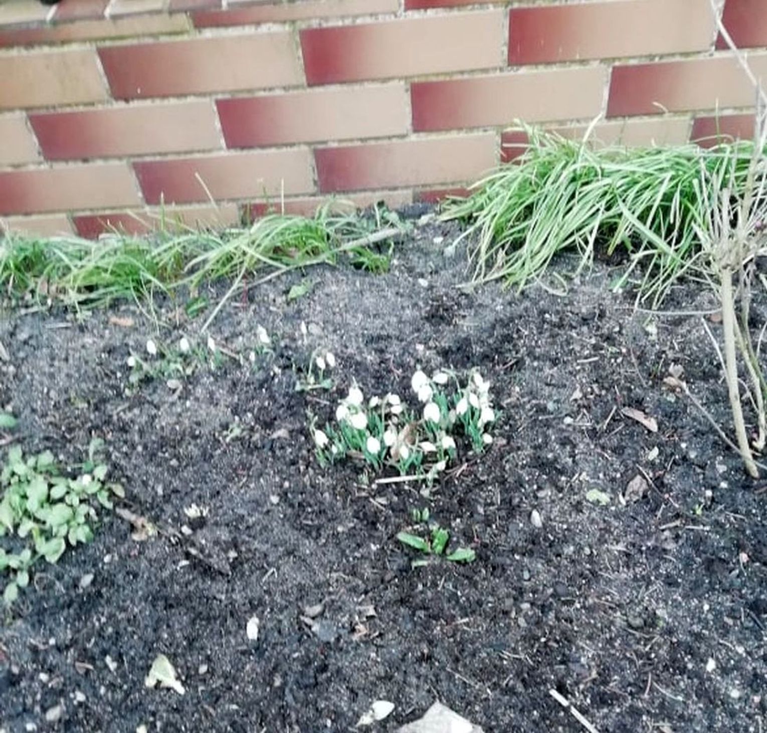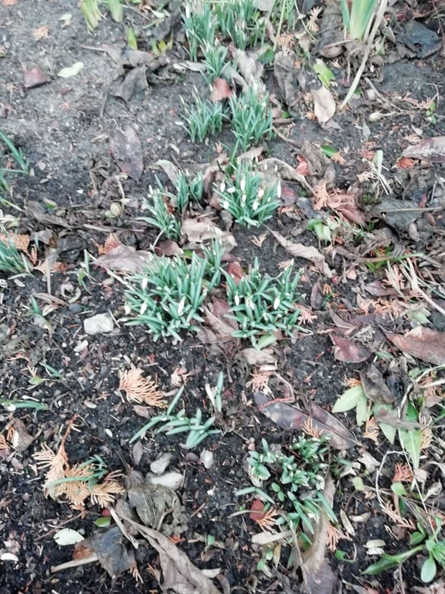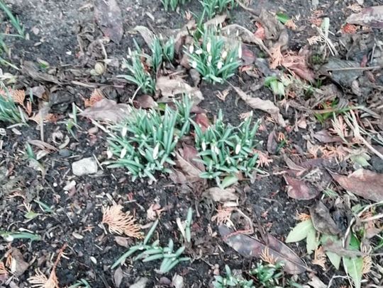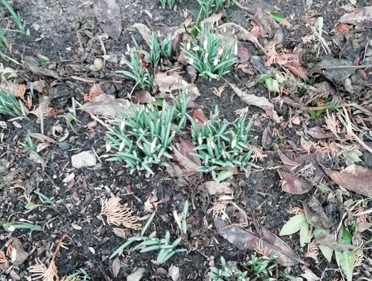 Na niektórych trawnikach i klombach w Gryfinie pojawiły się przebiśniegi.
