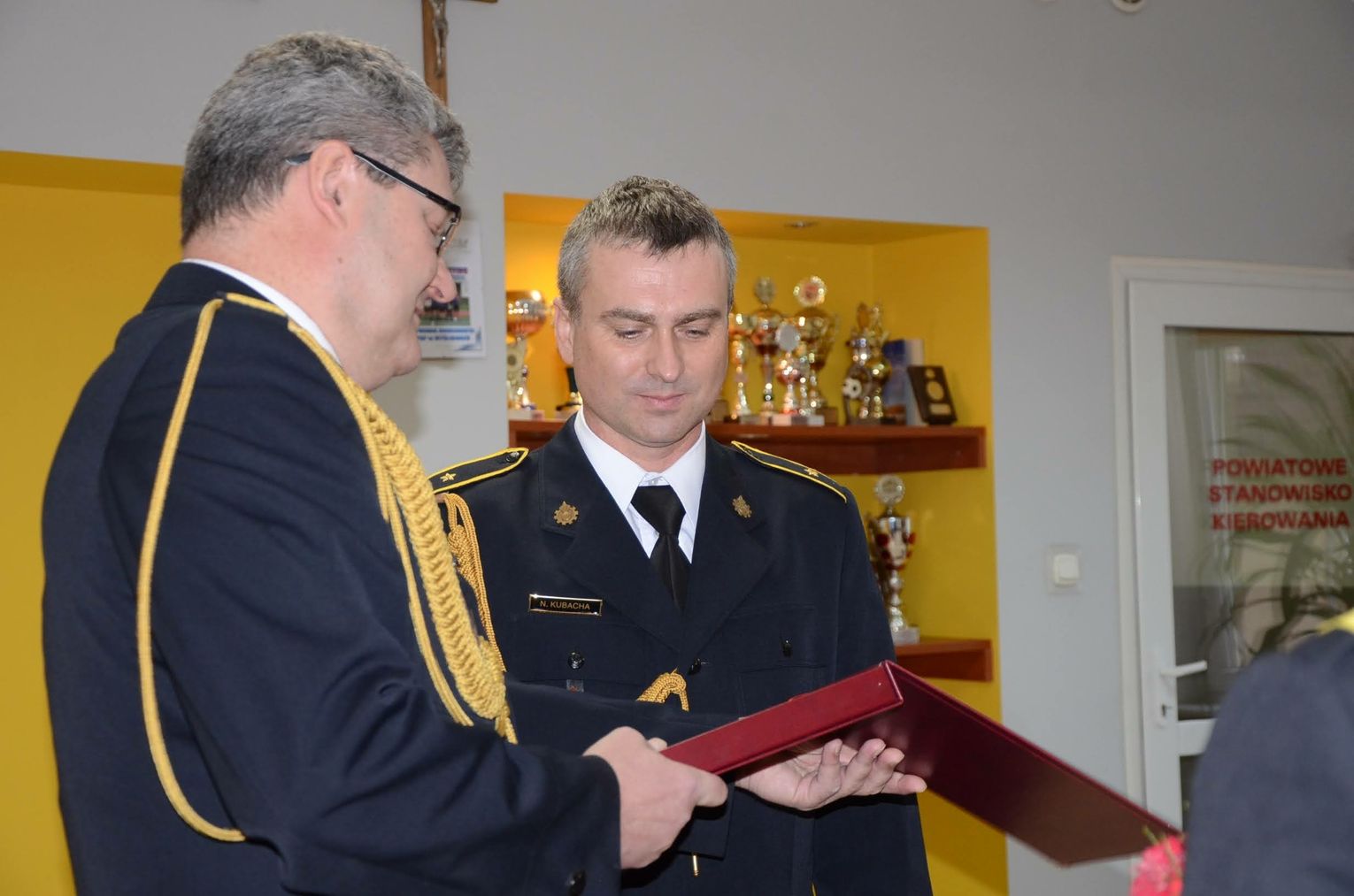 Komendant powiatowy PSP w Gryfinie bryg. Sławomir Michalski - po słowach podziękowania i uznania długoletniej służby - wręczył decyzję o zwolnieniu ze służby z dniem 31 stycznia 2022 r.