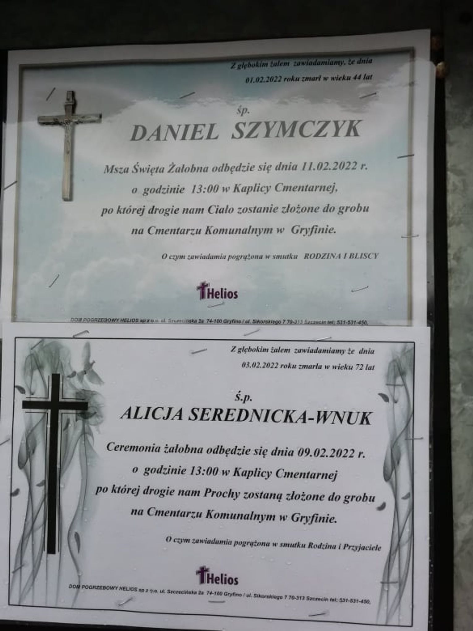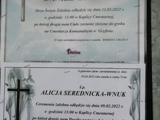 Ceremonia żałobna odbędzie się 9 lutego 2022 r. o godz. 13.00 w kaplicy cmentarnej w Gryfinie.