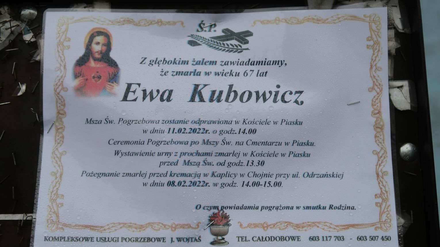 Ewa Kubowicz – zmarła w wieku 67 lat.