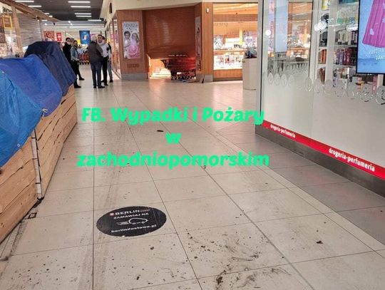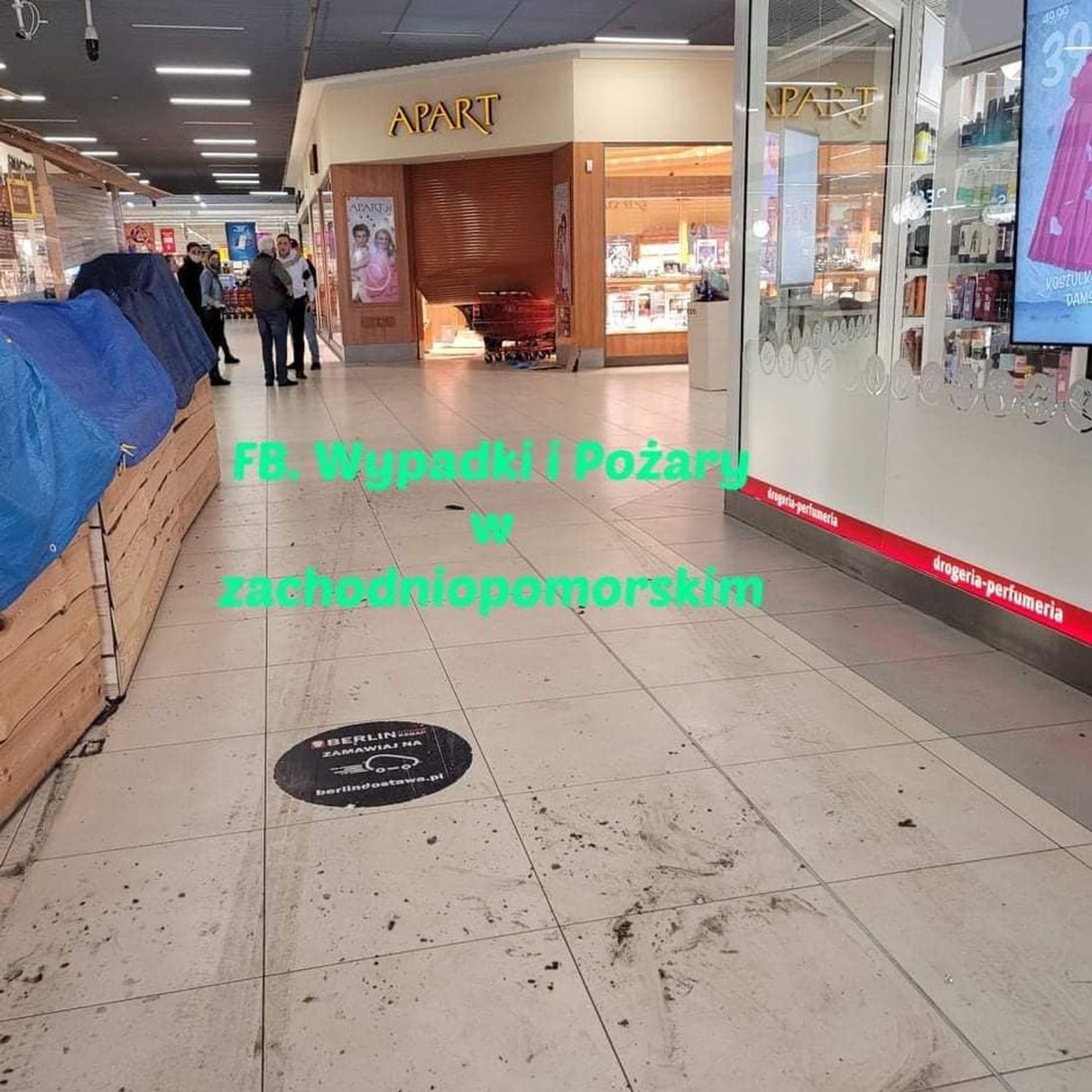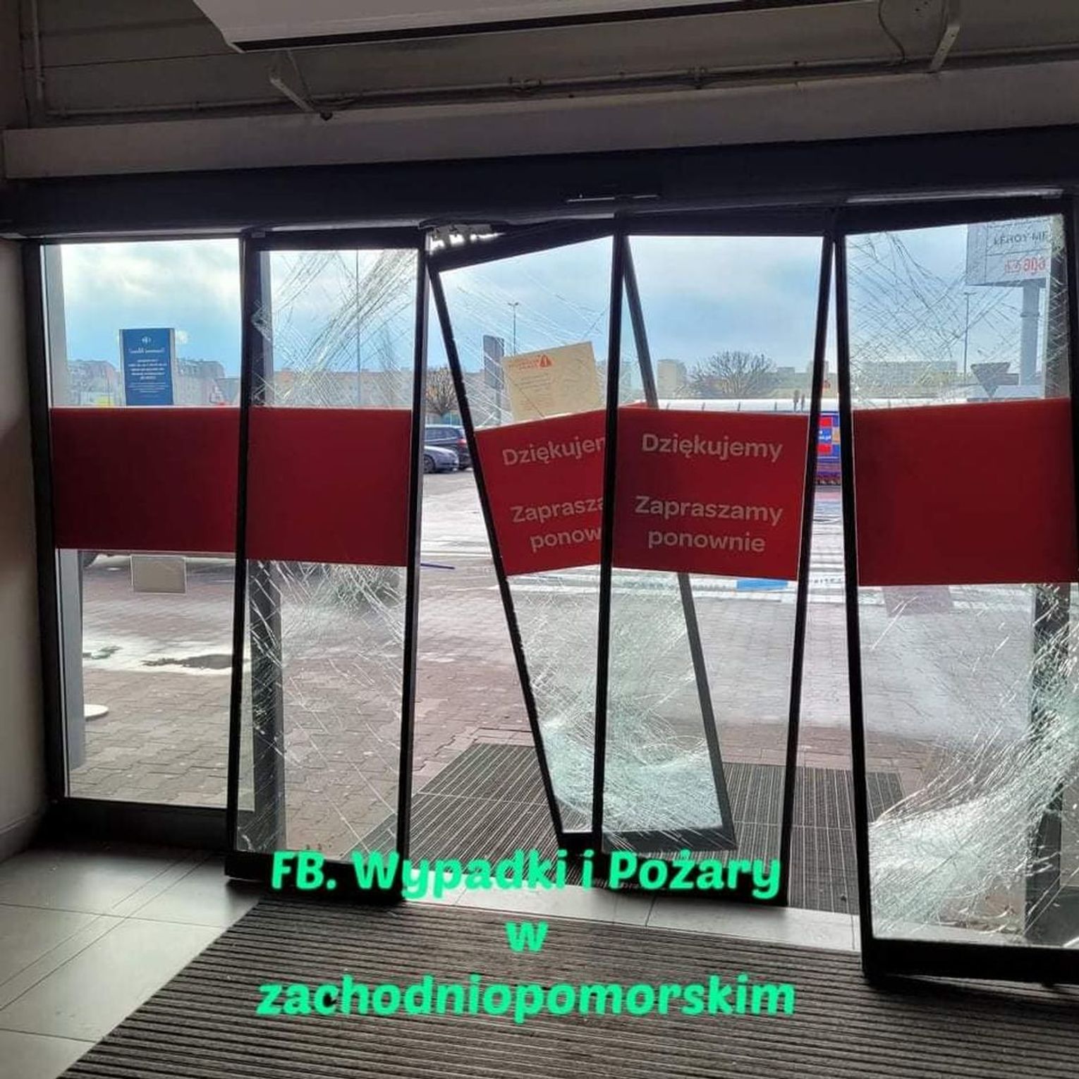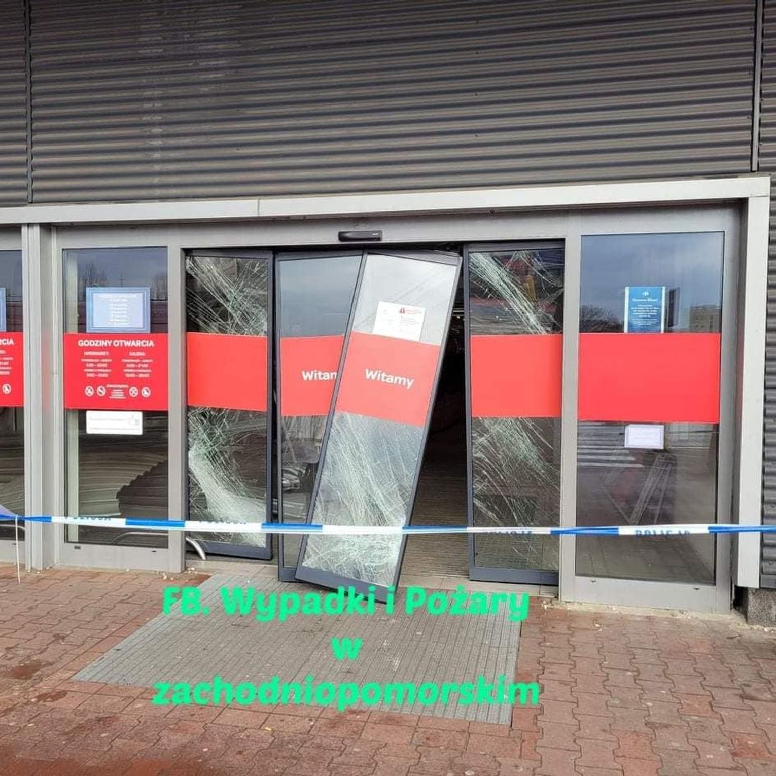 Sprawcy sforsowali drzwi galerii handlowej przy pomocy mercedesa skradzionego wcześniej.