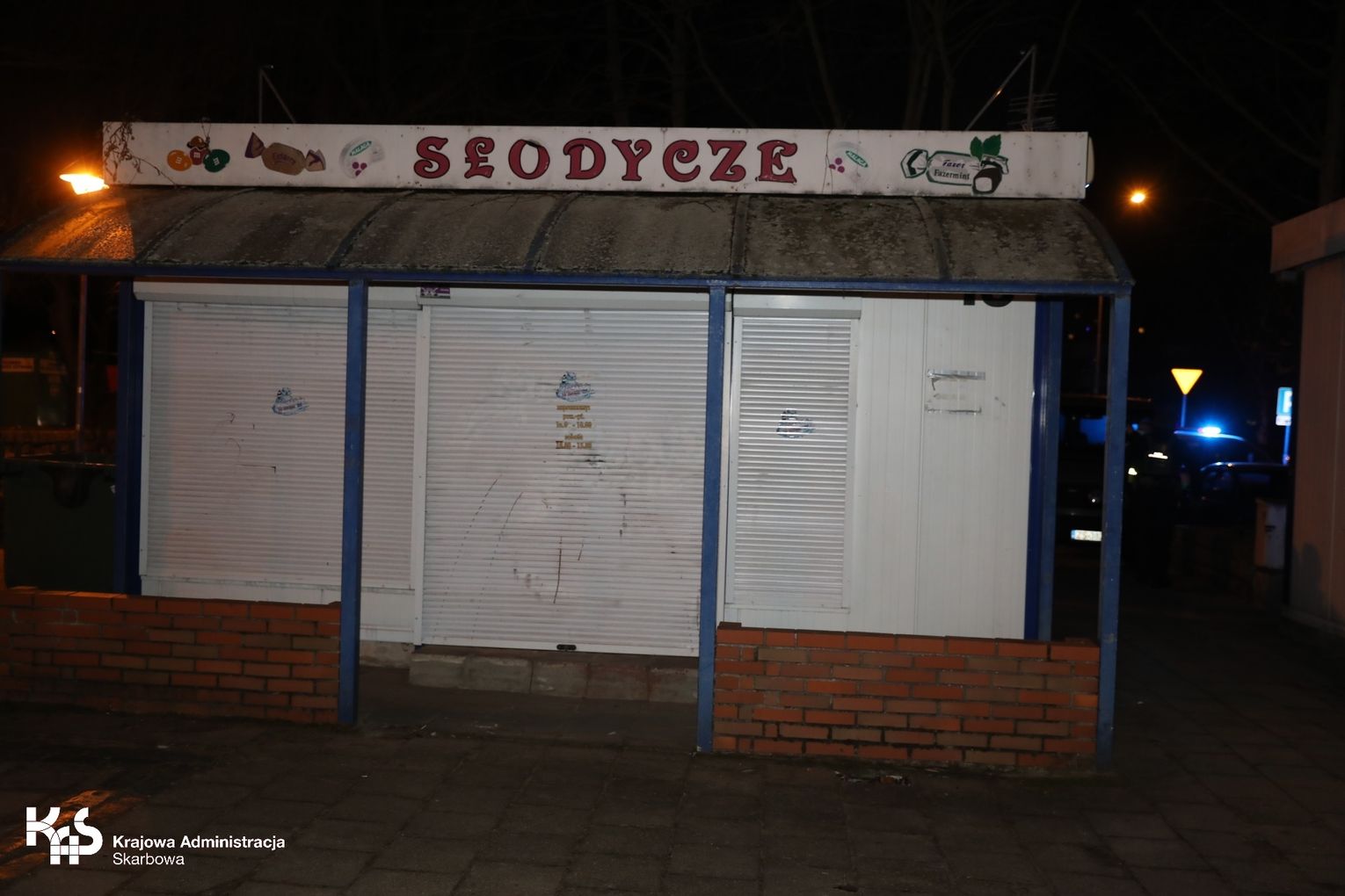 Kolejne działania dotyczyły pawilonu na targowisku na szczecińskim Prawobrzeżu, który teoretycznie powinien sprzedawać suplementy i odżywki dla sportowców bądź słodycze – co wynikało z szyldów wiszących nad lokalem. Funkcjonariusze bezskutecznie wzywali obecne w pawilonie osoby do otwarcia zamkniętych drzwi. Konieczne było więc siłowe wejście do lokalu – wyważenie drzwi. Wewnątrz pomieszczenia przebywało czterech mężczyzn (obywatele RP). W tym lokalu również znaleziono mężczyznę poszukiwanego listem gończym. Mężczyznę przekazano policjantom z Komisariatu Policji Szczecin Dąbie. W lokalu zabezpieczono ramach prowadzonych działań funkcjonariusze ZUCS zabezpieczyli trzy automaty do gier hazardowych, telefon komórkowy oraz gotówkę w kwocie 3,7 tys. zł.
