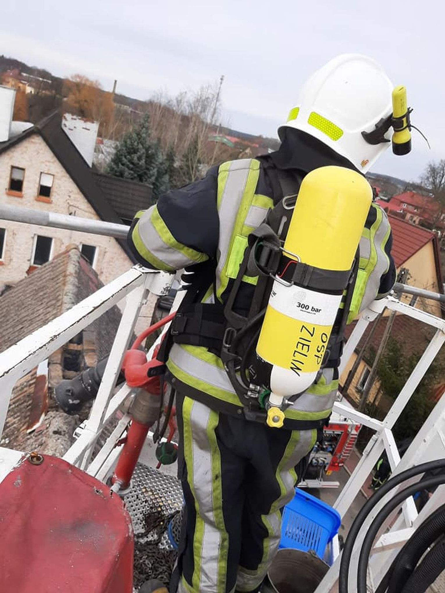 Zgłoszenie o pożarze służby otrzymały dzisiaj 10 lutego 2022 r. przed godz. 10. Natychmiast na miejsce zdarzenia zadysponowano zastępy straży pożarnej. Wkrótce strażacy potwierdzili pożar przewodu kominowego oraz belki poddasza, co groziło pożarem całego budynku.