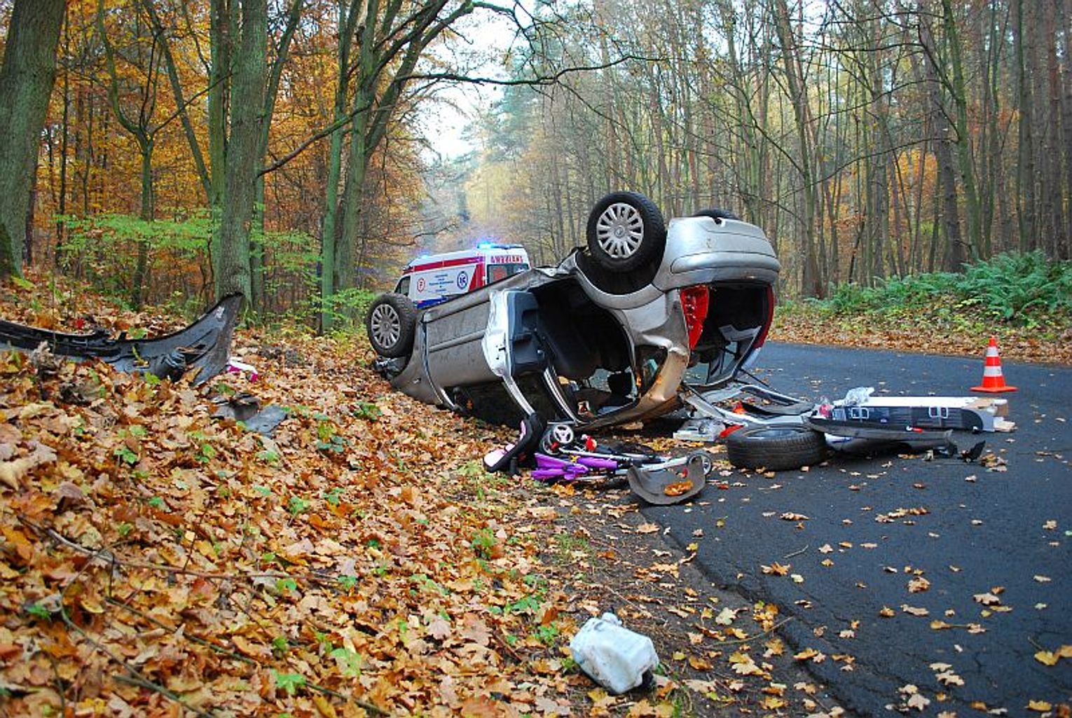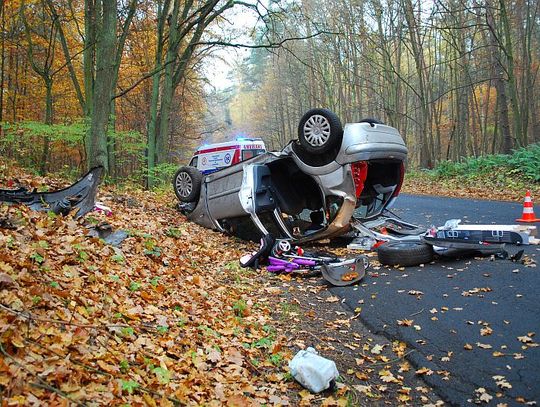Do kolejnego dzisiaj wypadku doszło przed Wirowem. Prawdopodobnie również kierowca i tego auta nie dostosował prędkości do warunków atmosferycznych. Auto dachowało.