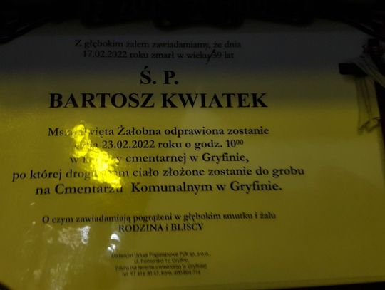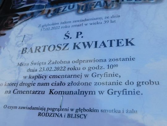 Msza św. żałobna odprawiona zostanie 21 lutego 2022 r. o godz. 13.00 w kaplicy cmentarnej w Gryfinie.