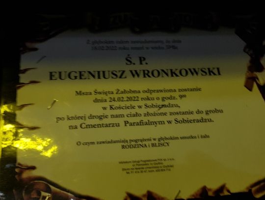 Msza sw. żałobna odbędzie się 24 lutego w koscile w Sobieradzu.