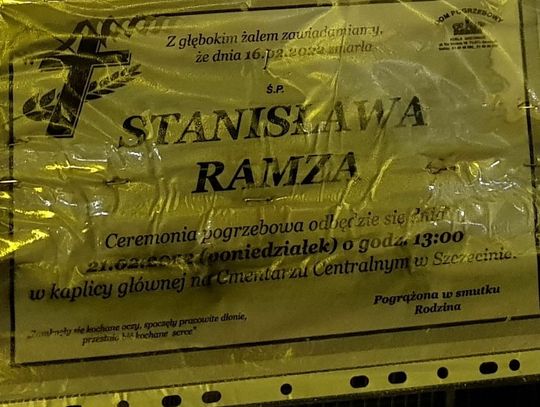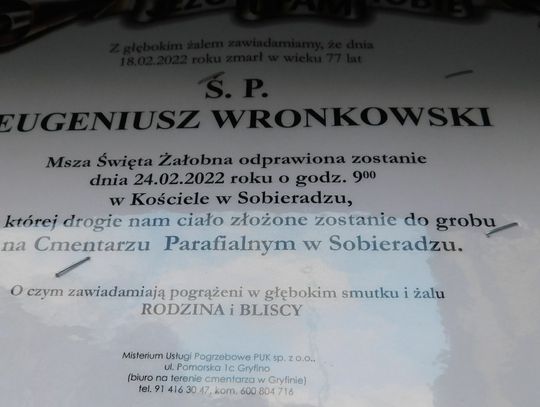 Msza św. żałobna odprawiona zostanie 23 lutego 2022 r. o godz. 10.00 w kaplicy cmentarnej w Gryfinie.