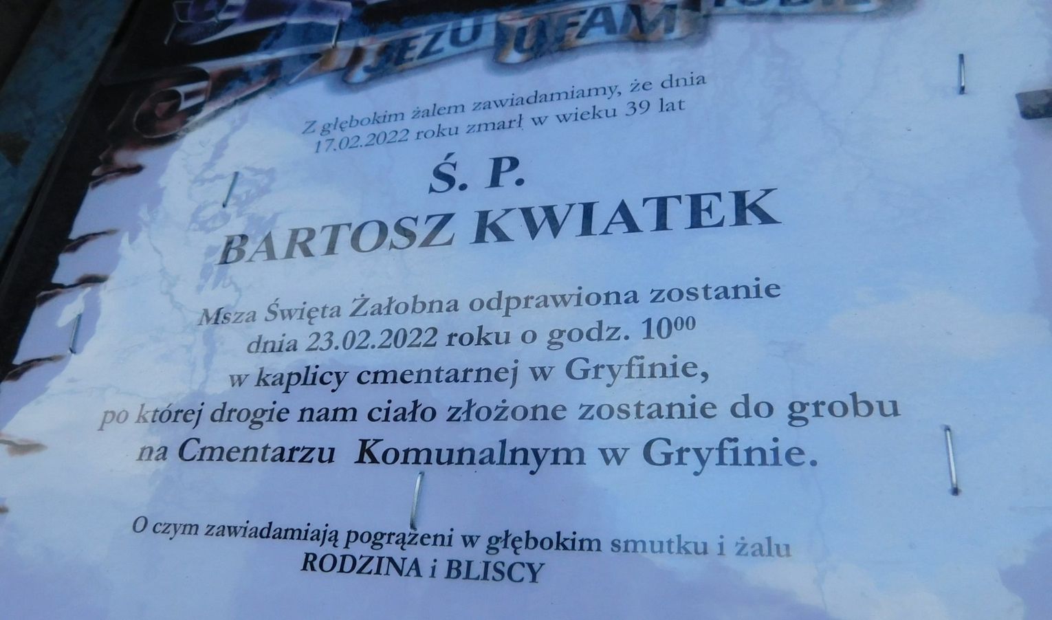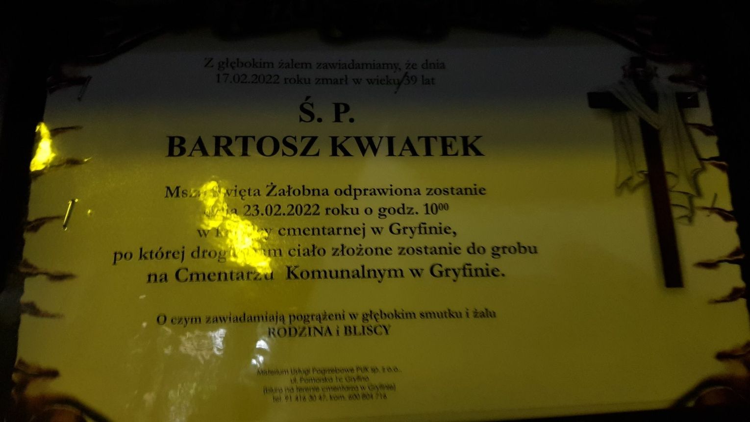 Bartosz Kwiatek - zmarł 17 lutego 2022 r. w wieku 39 lat.