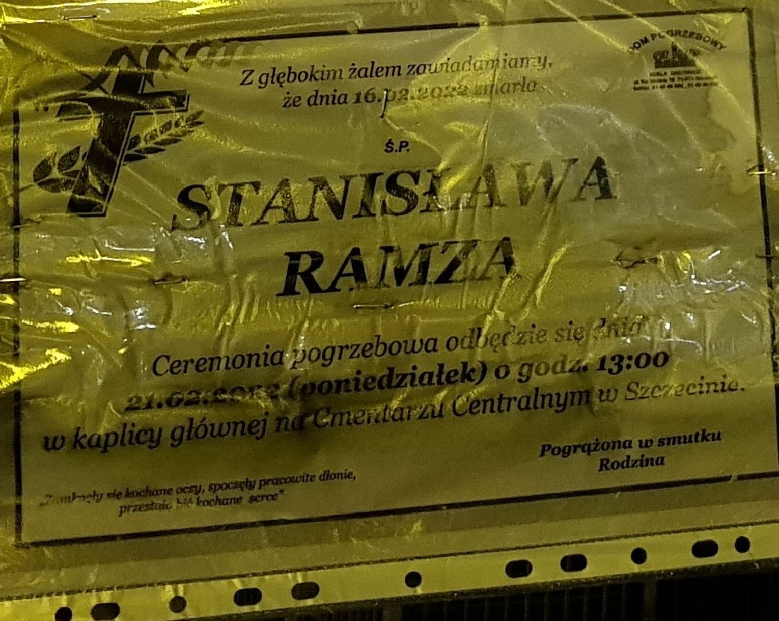 Ceremonia pogrzebowa odbedzie się na Cmentarzu Centralnym w Szczecinie 21 lutego 2021 r.