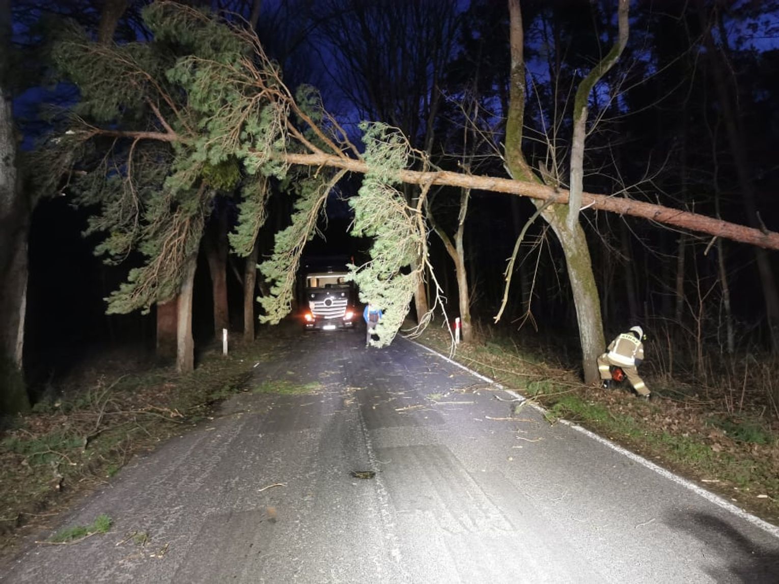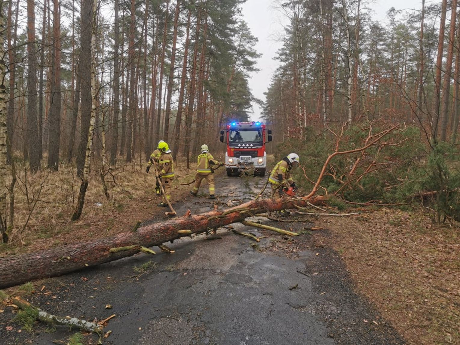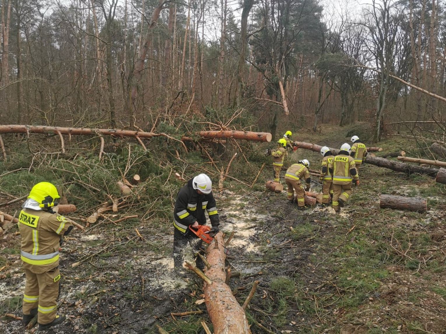 Sieci energetyczne są na bieżąco naprawiane, jednak jest do nich utrudniony dostęp przez powalone drzewa.
