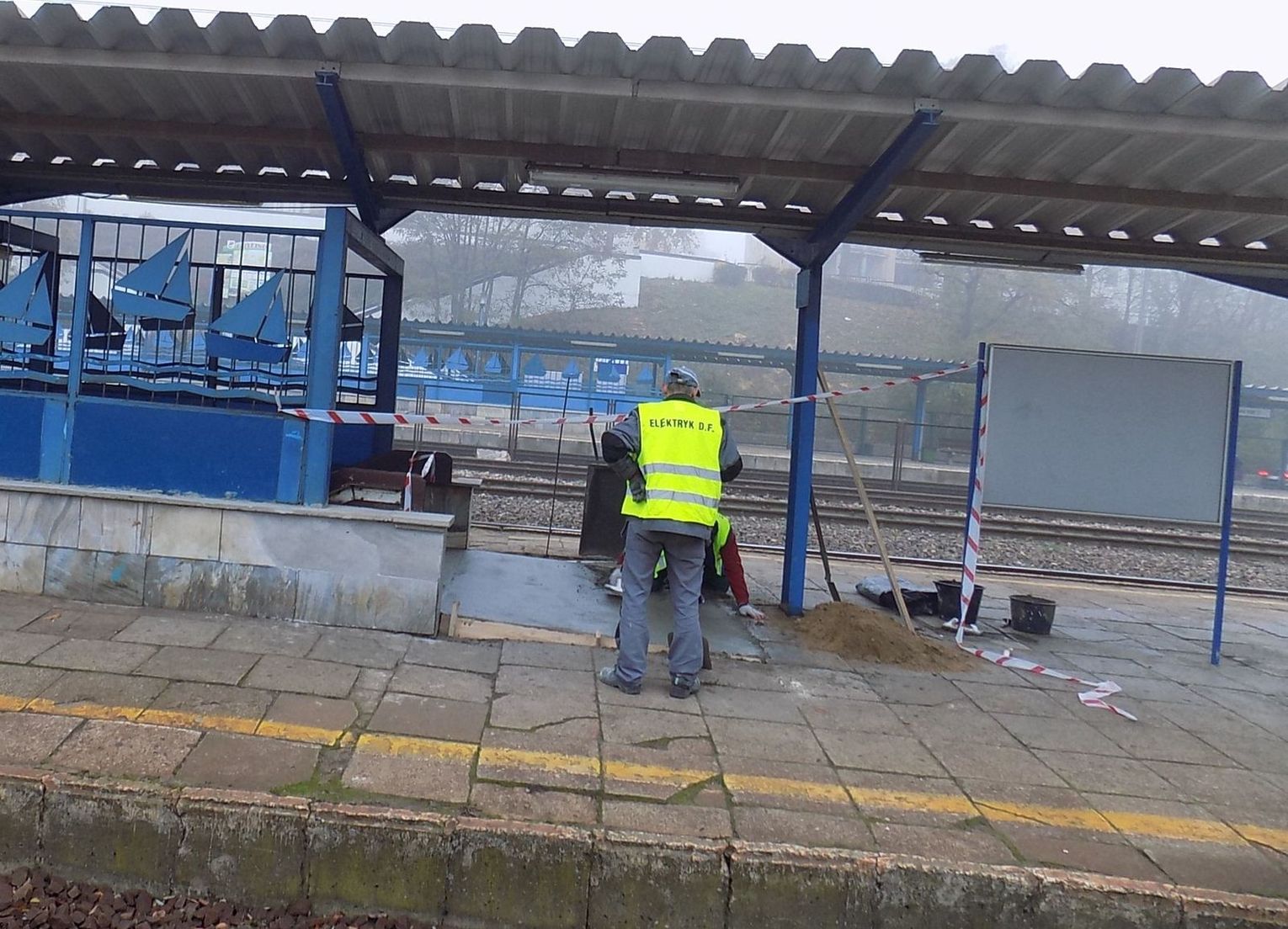 Pasażerowie skarżyli się, że tuż przy schodach na drugim peronie gryfińskiego dworca można było skręcić, a nawet złamać nogę. Powodem ewentualnego wypadku była sporych rozmiarów dziura. W środę, 4 listopada zabrano się wreszcie za jej likwidację. Panowie pracowali w pocie czoła. Teraz jak wyschnie wylewka, katastrofa nikomu nie zagrozi, bo dziura będzie „załatana”.